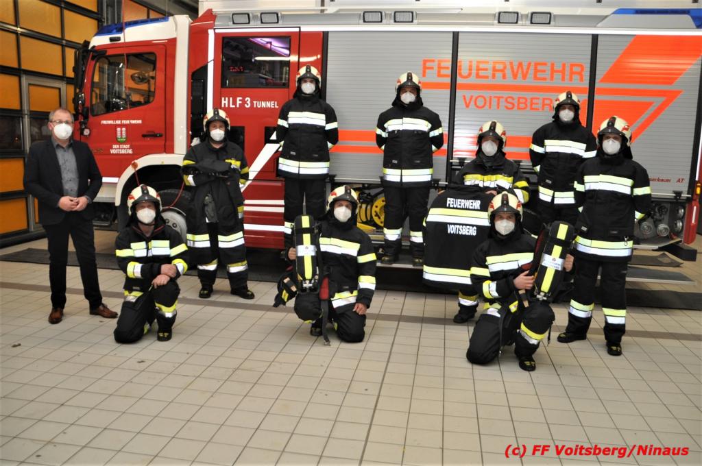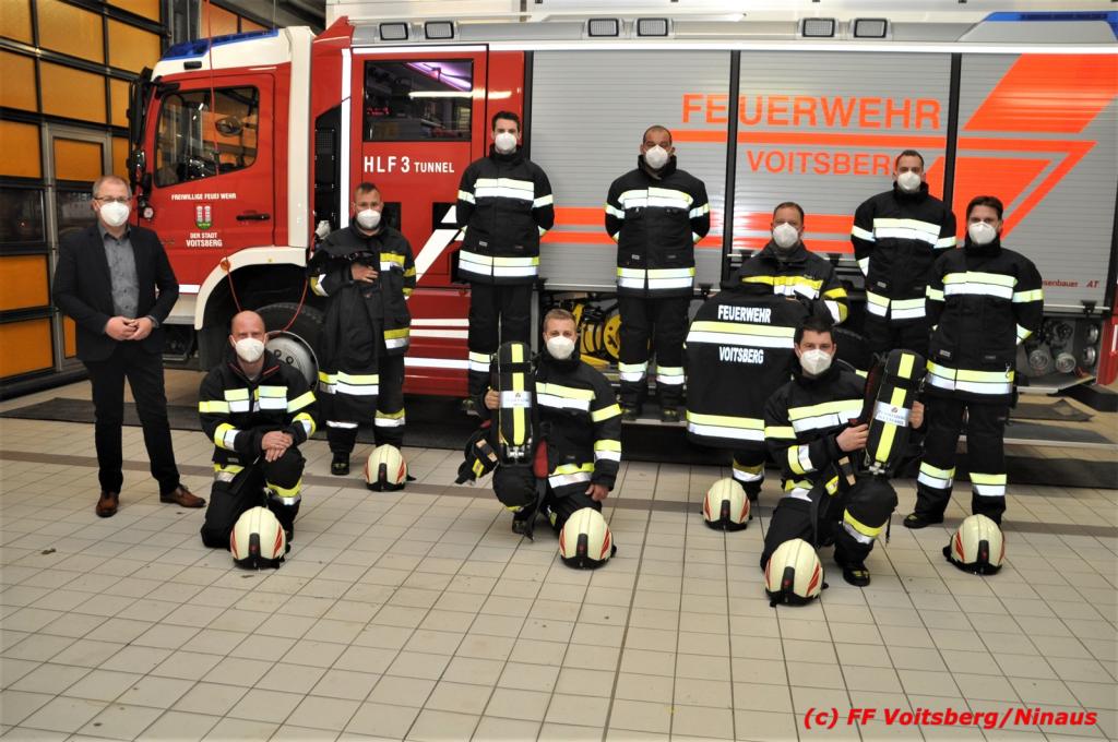 VOITSBERG, am 15.03.2021 Die Freiwillige Stadtfeuerwehr Voitsberg ist in der Einsatzstatistik der Steiermark im Vorderfeld anzufinden. Um auch eine sichere Uniformierung bei Brandeinsätzen zu gewähren, hat die Stadtgemeinde Voitsberg einen großen Teil der Einsatzkräfte mit neuen Einsatzhosen und –Jacken ausgestattet.