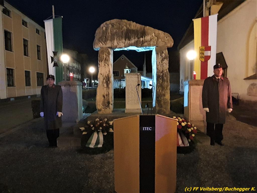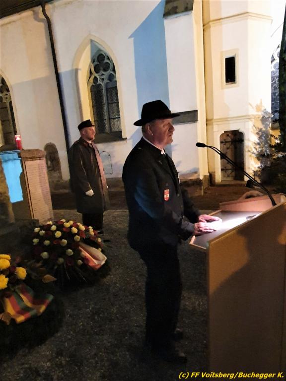 In Ansprachen von Vizebgm. Kurt Christof, BO Ing. Johann Harrer und dem Obmann Günter Salmutter wurden die Leistungen der gefallen und verstorbenen Kameraden beider Weltkriege gewürdigt und Kränze niedergelegt.