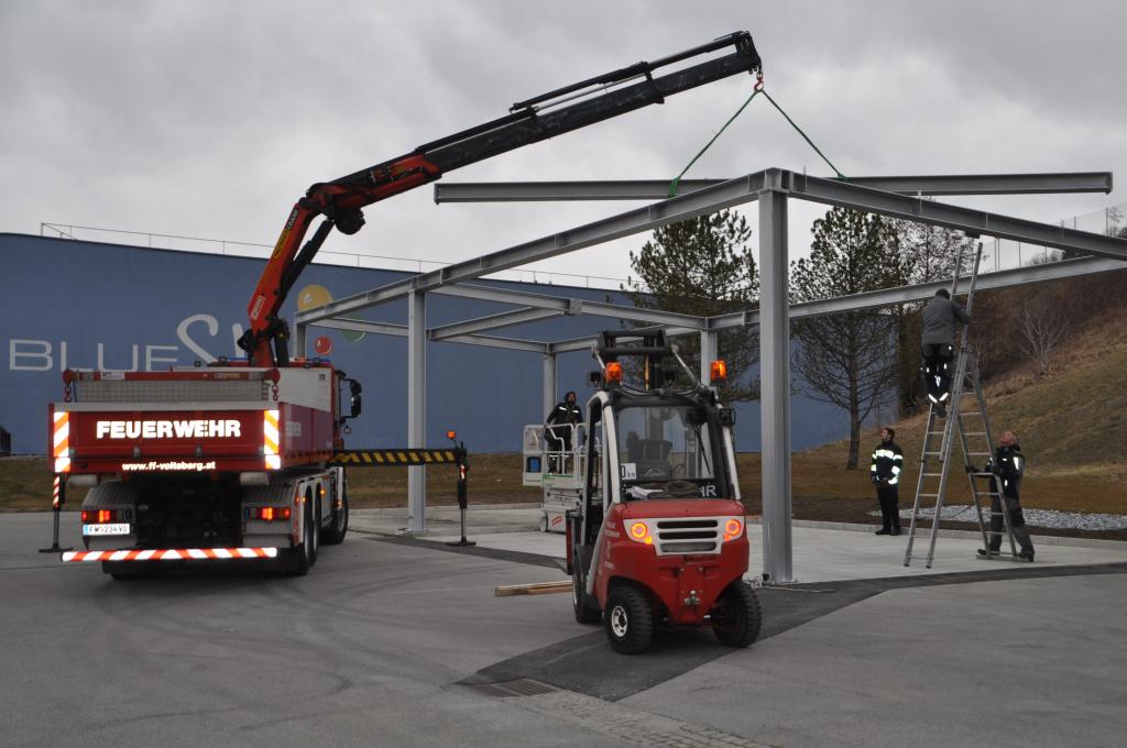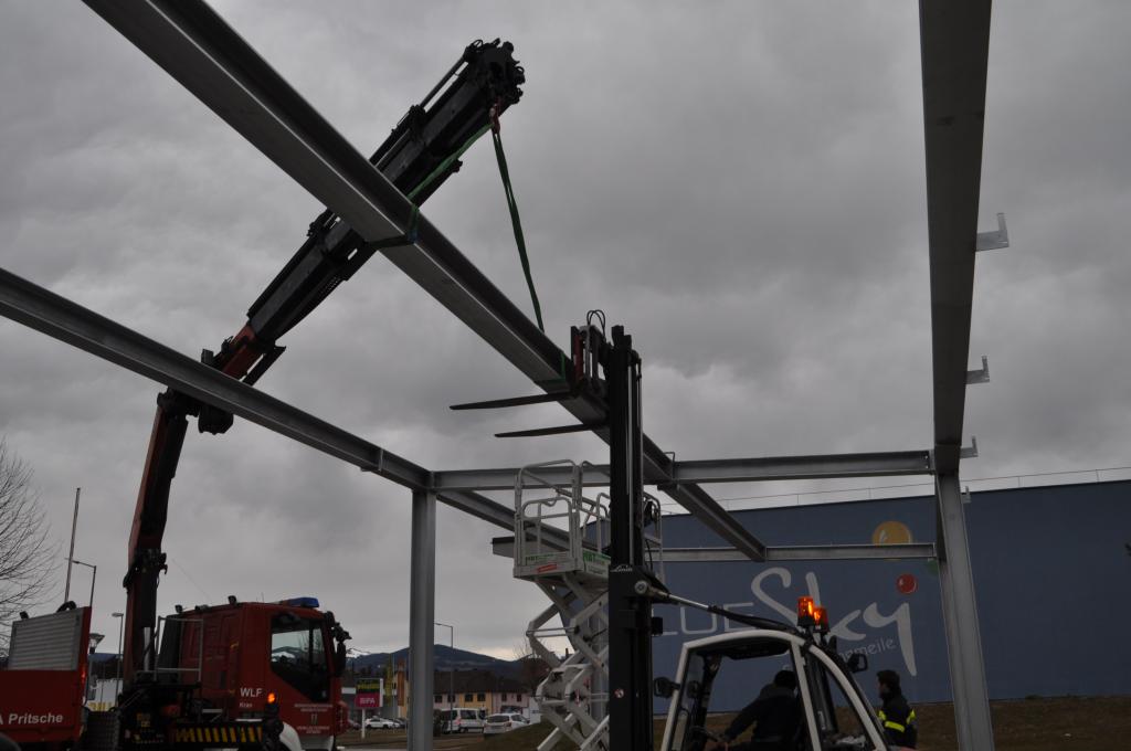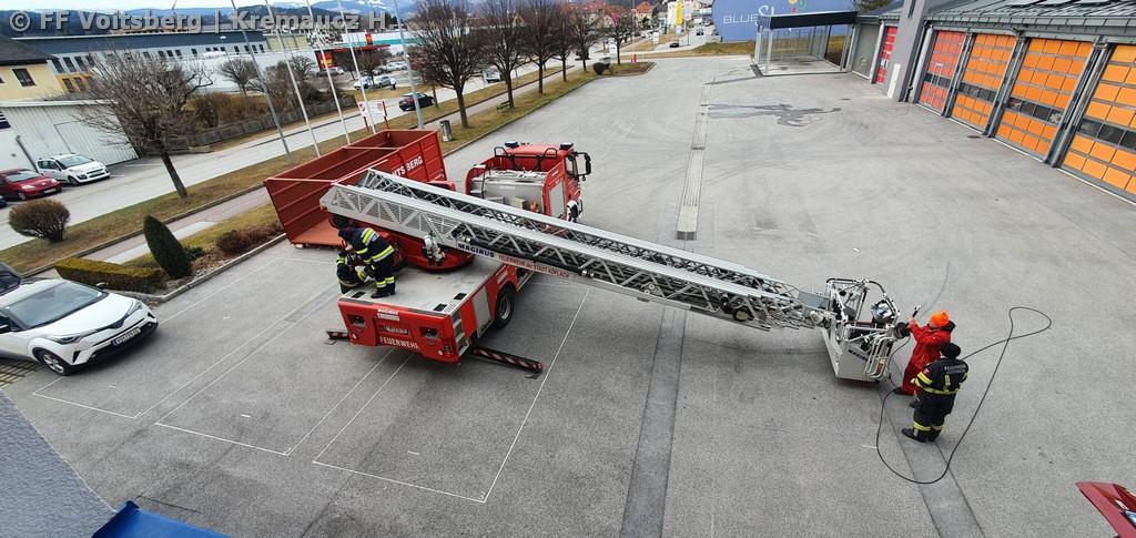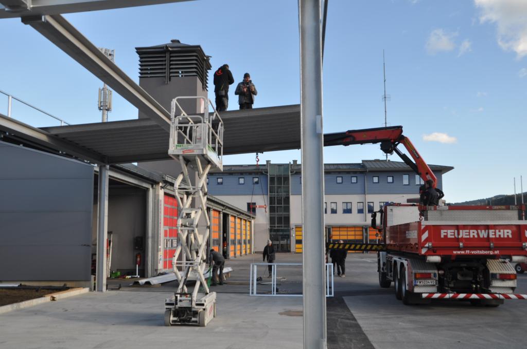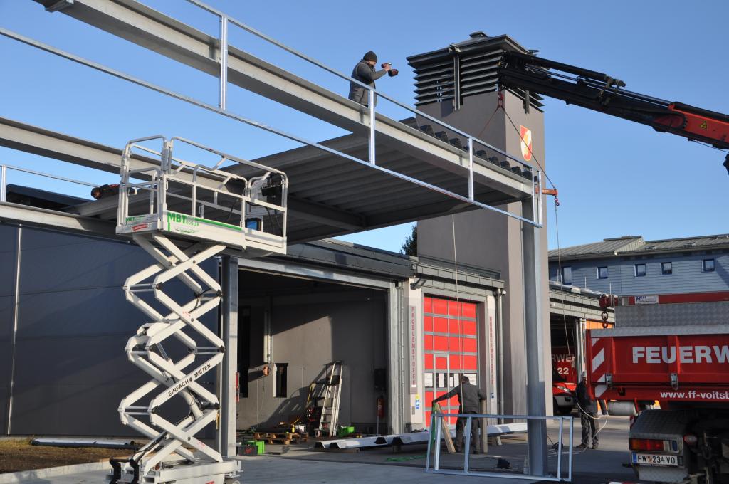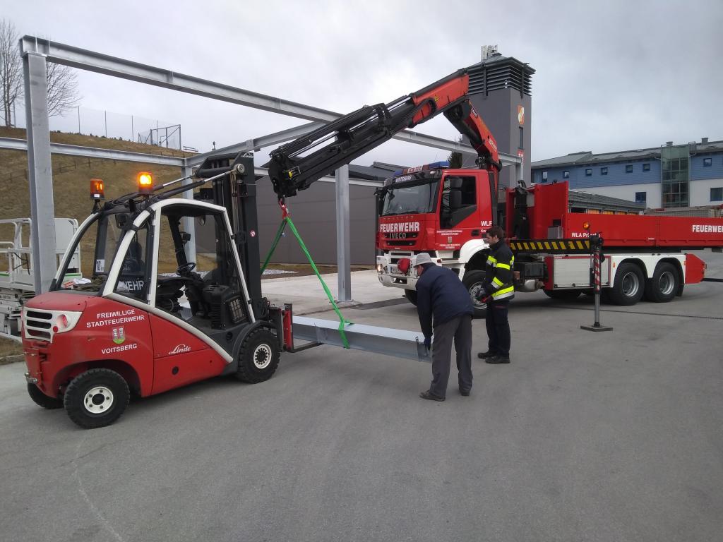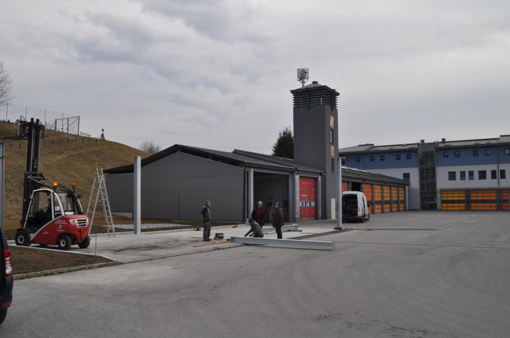 VOITSBERG, am 25.02.2022 Beim Feuerwehrhaus der Feuerwehr Voitsberg wurden in der letzten Februarwoche 2022 wieder zwei Zukunftsprojekte in Angriff genommen. Es wurde ein Zubau für die Wechselcontainer aufgestellt und weiter erfolgte die Antennenmontage für bessere Kommunikation