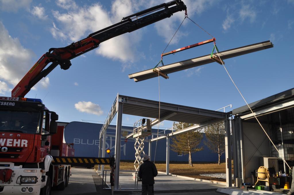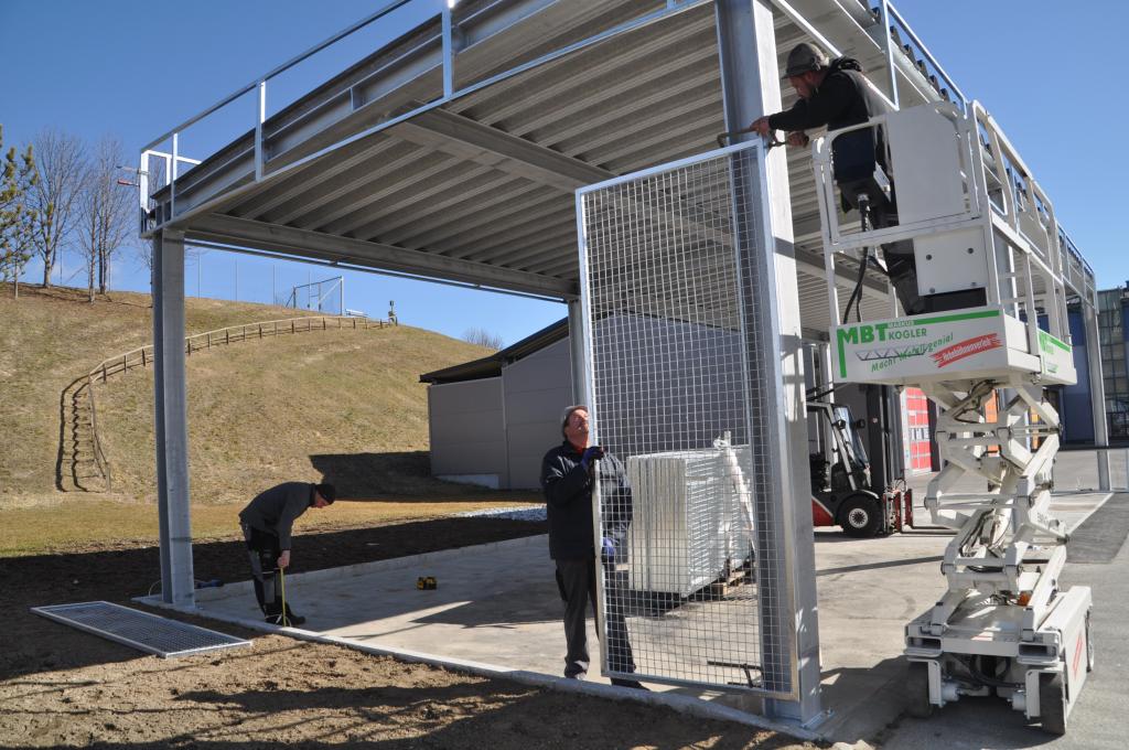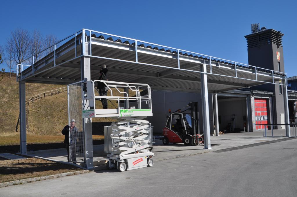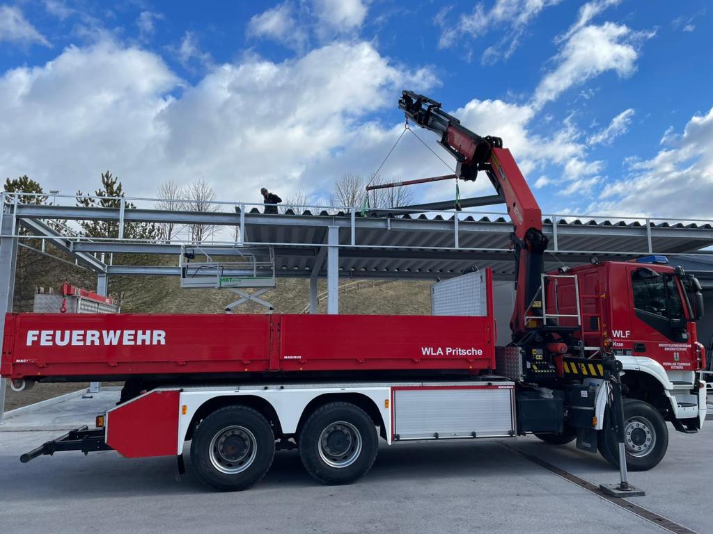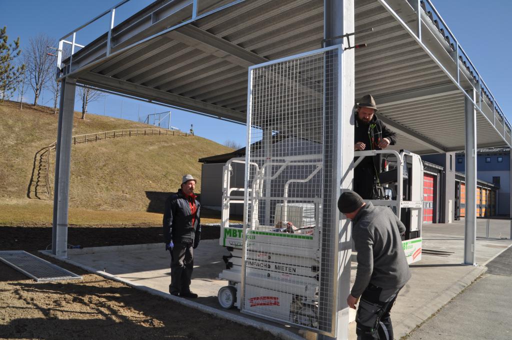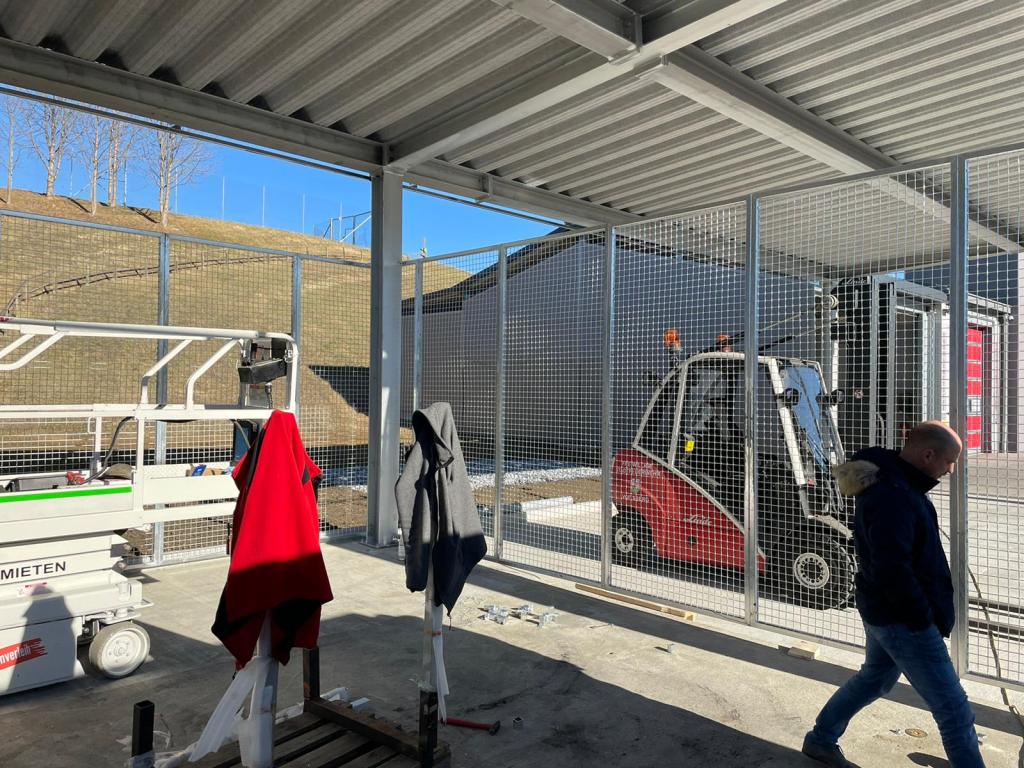 VOITSBERG, am 25.02.2022 Beim Feuerwehrhaus der Feuerwehr Voitsberg wurden in der letzten Februarwoche 2022 wieder zwei Zukunftsprojekte in Angriff genommen. Es wurde ein Zubau für die Wechselcontainer aufgestellt und weiter erfolgte die Antennenmontage für bessere Kommunikation