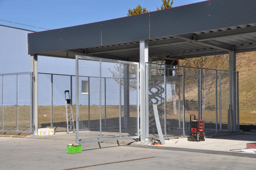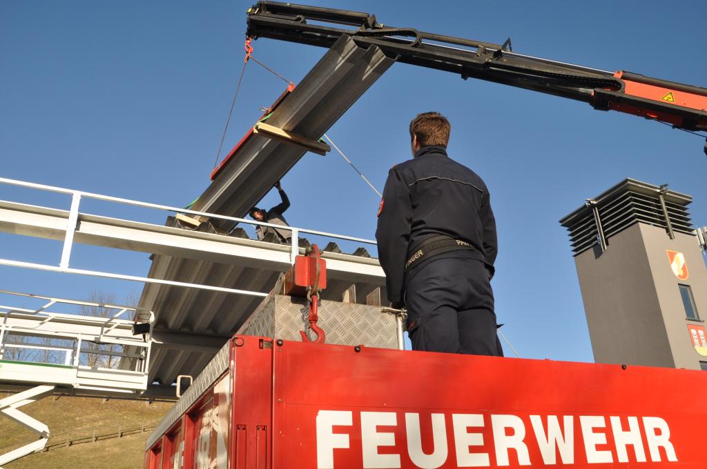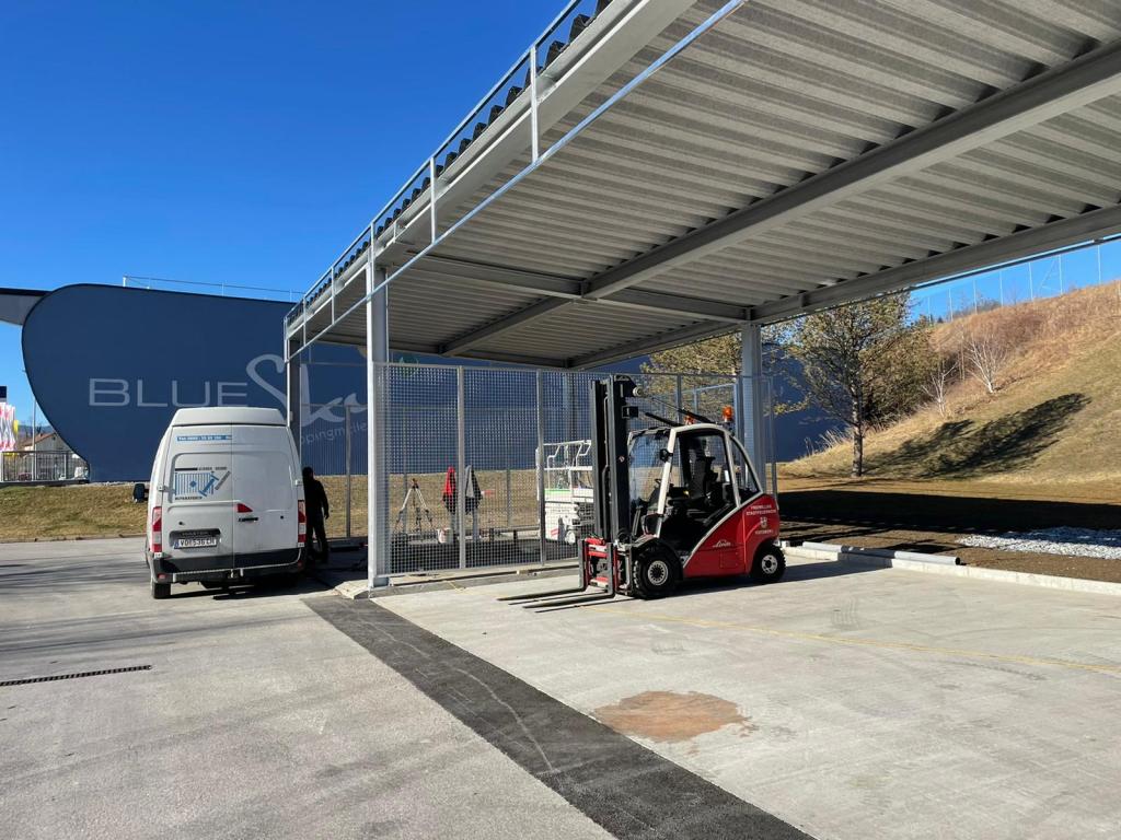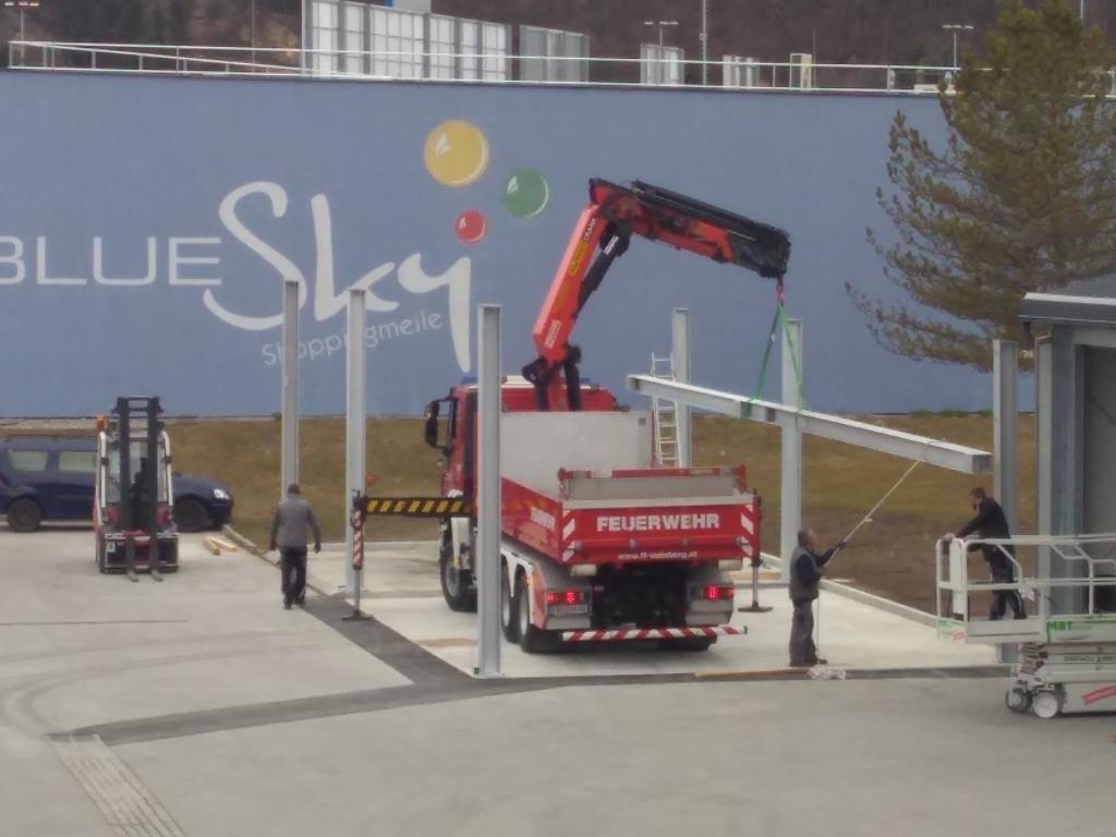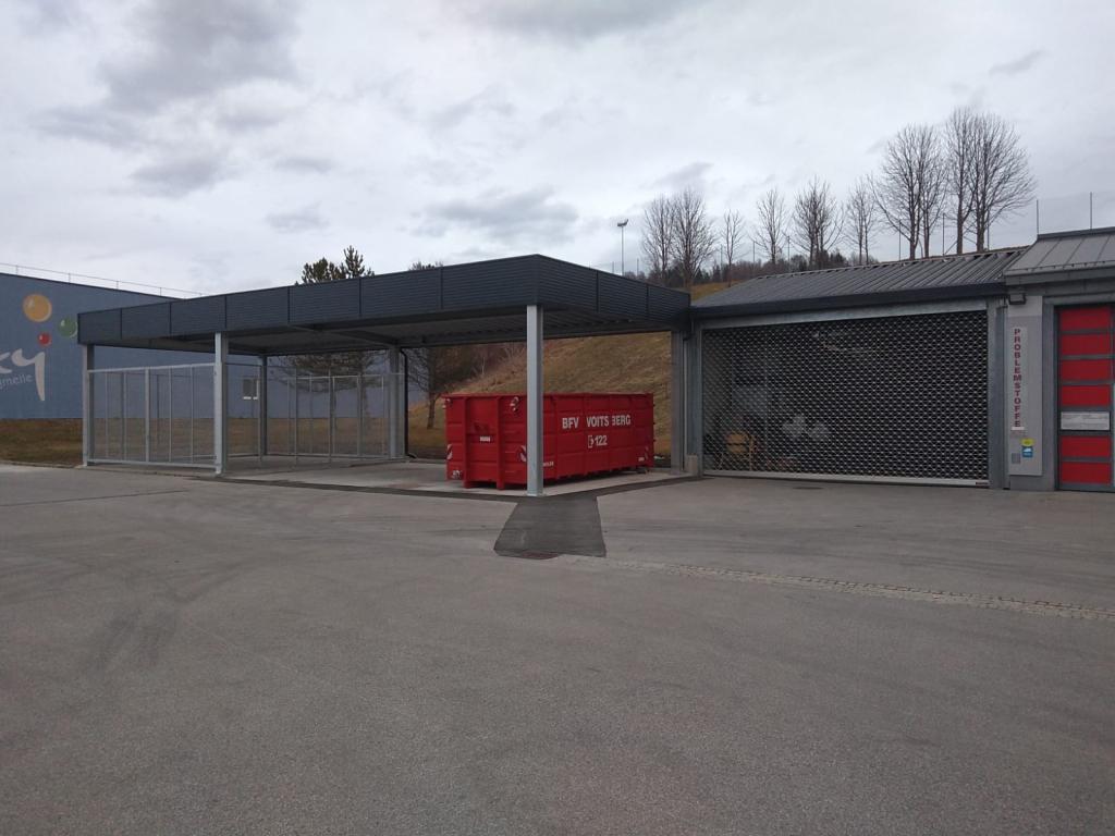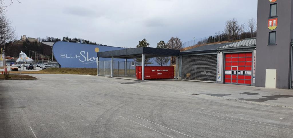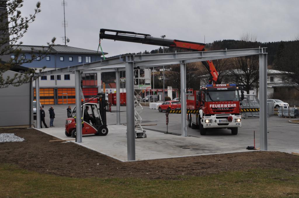 Nachdem der FF Voitsberg Anfang 2021 eine Mulde für den Wechsellader durch den Bereichsfeuerwehrverband Voitsberg zur Verfügung gestellt wurde, galt es diese nun auch geschützt zu lagern. Hierfür wurde gemeinsam mit der Stadtgemeinde ein Zubau in Form eines Flugdaches geplant und nun umgesetzt.