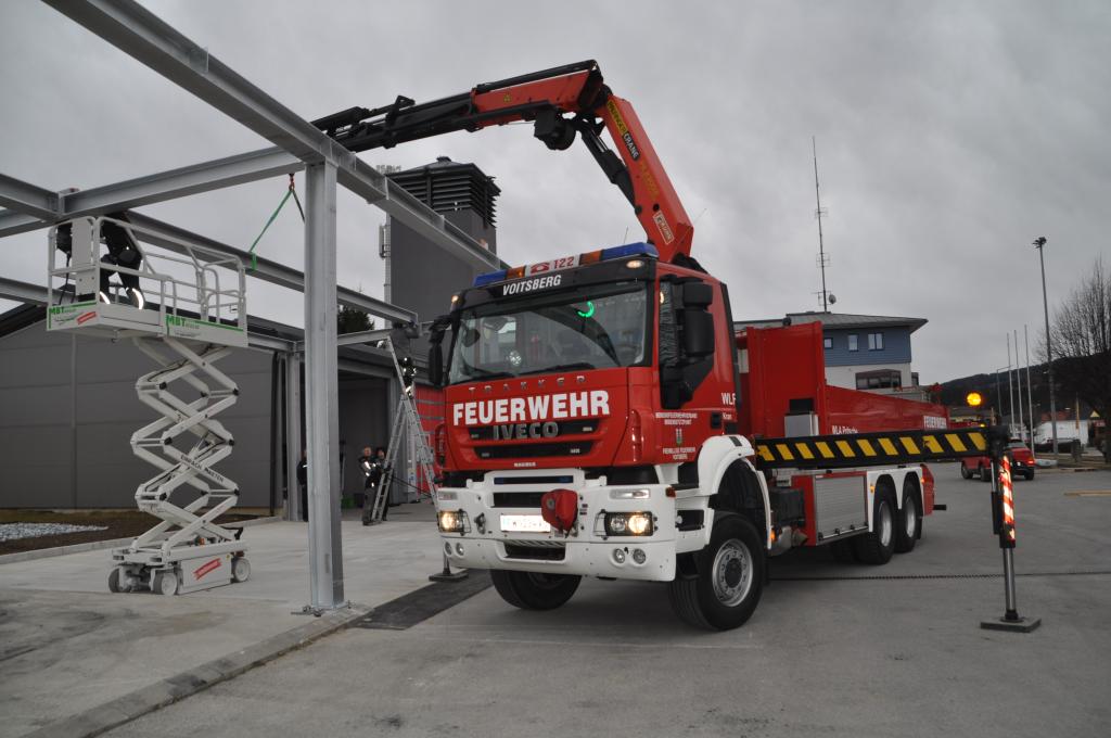 Der Zubau wurde zukunftsorientiert geplant und bietet Platz für drei Wechselcontainer sowie einen gegen Vandalismus gesicherten Abstellplatz für die Übungsfahrzeuge. Finanziert wurde das Projekt durch Eigenmittel der Feuerwehr, durch Förderungen des Landesfeuerwehrverbandes sowie der Stadtgemeinde Voitsberg.