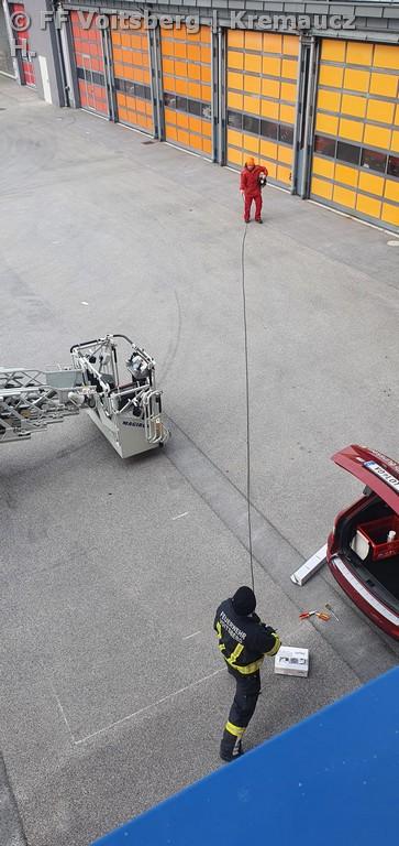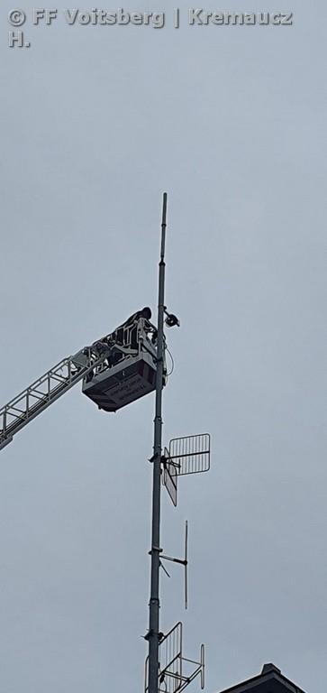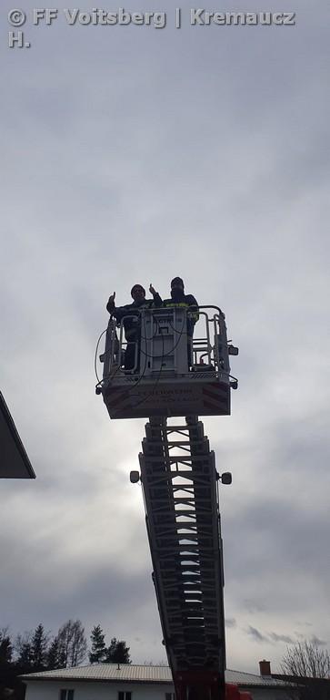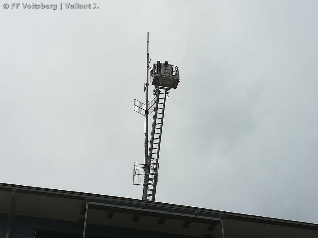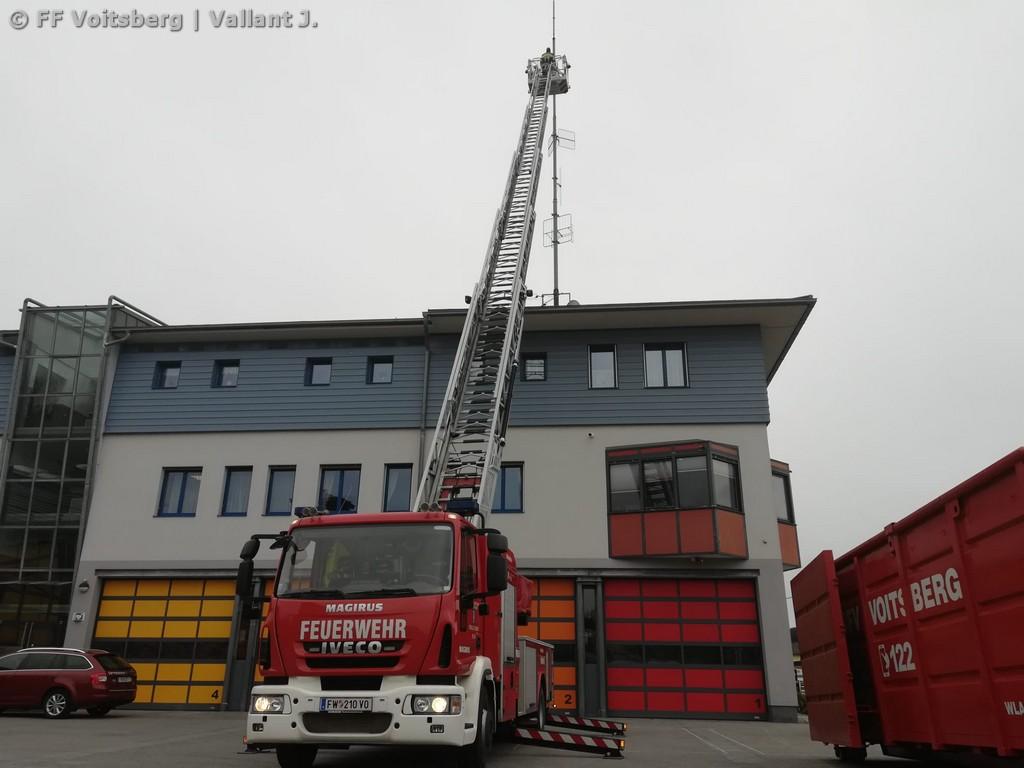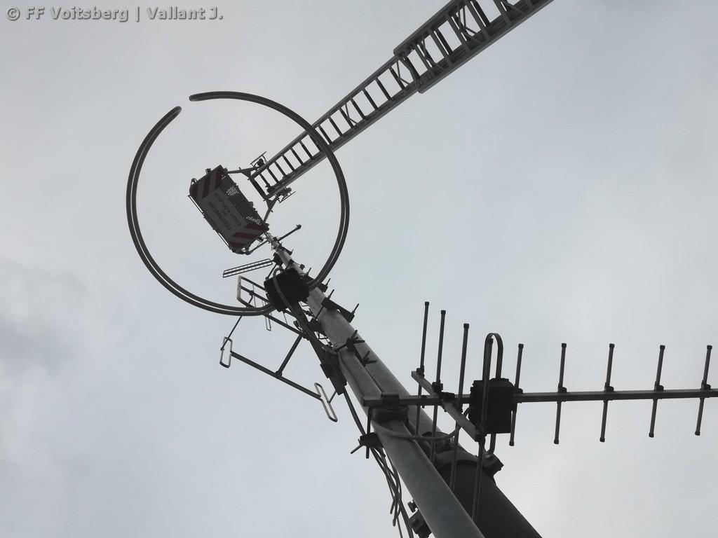 Unterstützt wurde die Umsetzung von Oberbrandmeister Andreas Katzenschlager mit der Drehleiter der FF Köflach. Erste Test haben gezeigt, dass die eine Kommunikation bis Köflach bzw. Krottendorf möglich ist. Hier wird es weitere Tests geben, um einen Krisen-Kommunikationsplan für den Bezirk Voitsberg erstellen zu können.