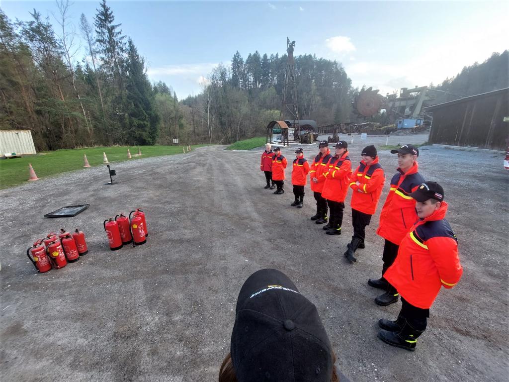 VOITSBERG, am 15.04.2022 Die Feuerwehrjugend der FF Voitsberg führte am 15. April 2022 unter Anleitung von Rene Sorger und Daniel Traußnigg eine praktische Übung mit der Handhabung von Feuerlöschern und der richtigen Löschtaktik bei einem Fettbrand durch.