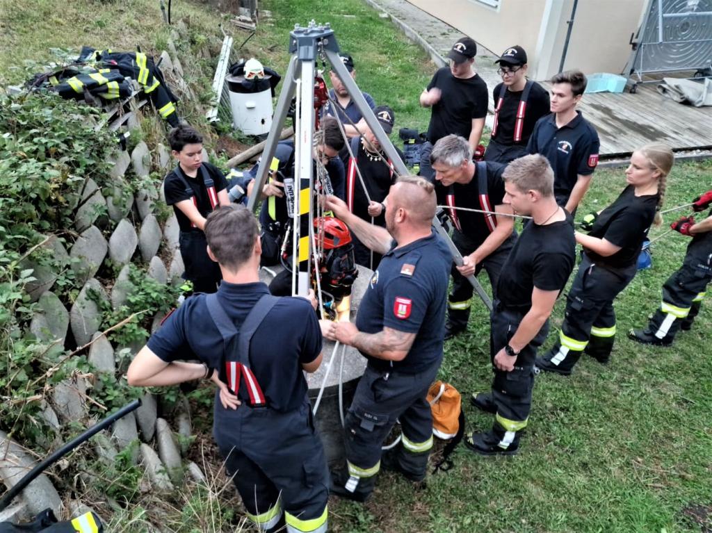 VOITSBERG, am 05.09.2022 Die Kameradinnen und Kameraden wurde bei der Übung am 5. September 2022 die richtige Einsatztaktik bei Retten von Personen aus einem Brunnen gelehrt.