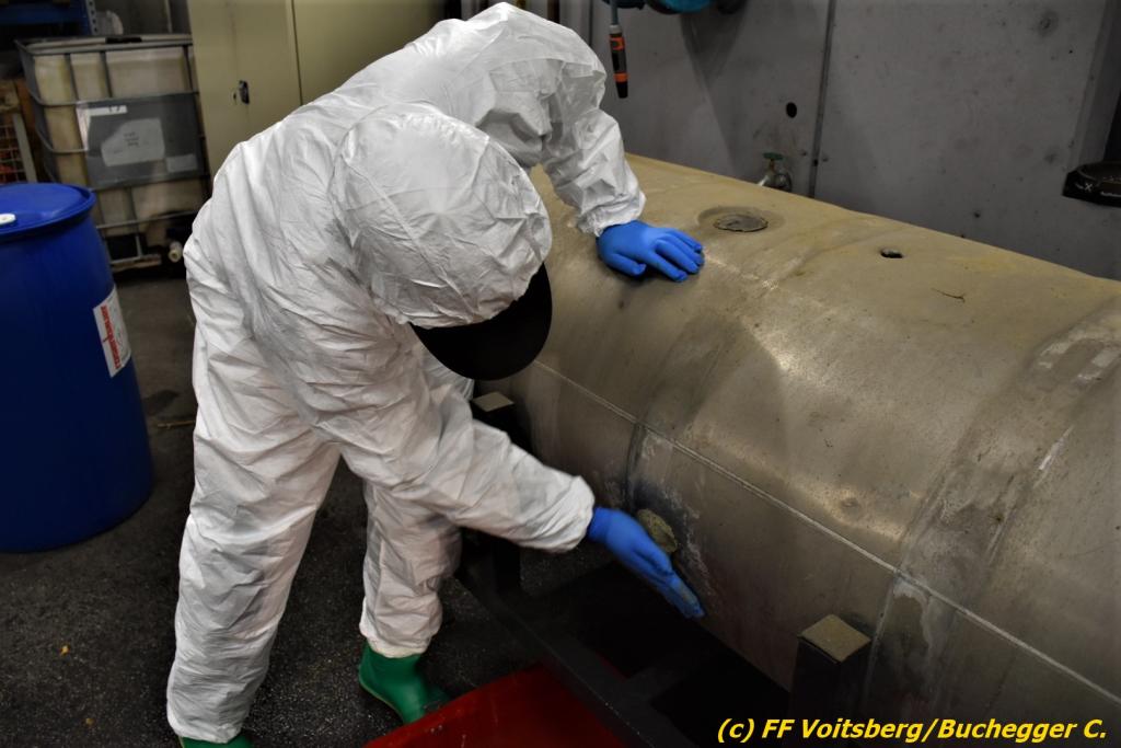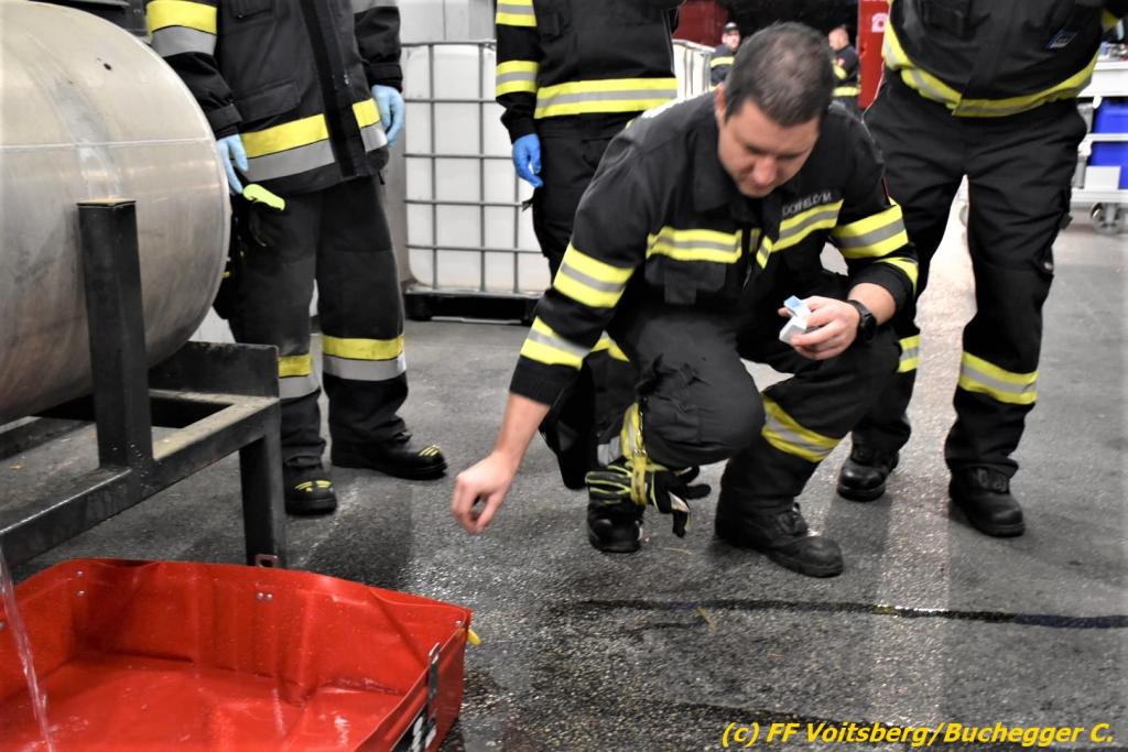 VOITSBERG, am 17.10.2022 Am Abend des 17.10.2022 wurde am Gelände des Voitsberger Feuerwehrhauses eine Ausbildungsübung mit dem Themenschwerpunkt „Schadstoffeinsatz“ abgehalten. Diese wurde vom Gefahrgutbeauftragten OLM Ing. Markus Donnelly vorbereitet und ausgearbeitet.