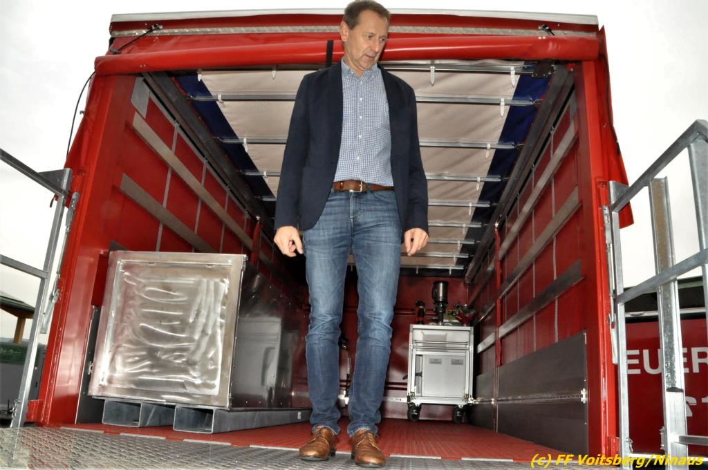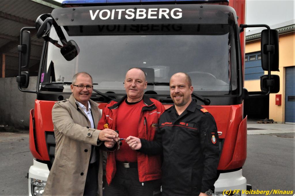 Die „offizielle Schlüsselübergabe“ fand im Beisein von Bürgermeister Mag. (FH) Bernd Osprian, Vizebürgermeister Kurt Christof, Stadtamtsdirektor Ing. Gernot Thürschweller, Bauhofleiter Günther Friedrich und dem Kommando der FF Voitsberg HBI DI (FH) Bernd Unger und OBI Harald Kremaucz statt.