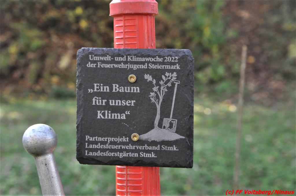 Am Freitag, dem 28. Oktober 2022, wurde ein Baum im Schlosspark in Voitsberg seitens der Feuerwehrjugend der FF Voitsberg, dem Bürgermeister Mag. (FH) Bernd Osprian, dem Wehrkommando HBI DI (FH) Bernd Unger und OBI Harald Kremaucz und den Jugendbeauftragten BI Rene Sorger und LM d. F. Katharina Gogg gepflanzt.