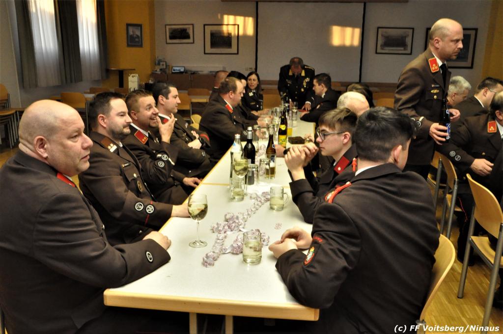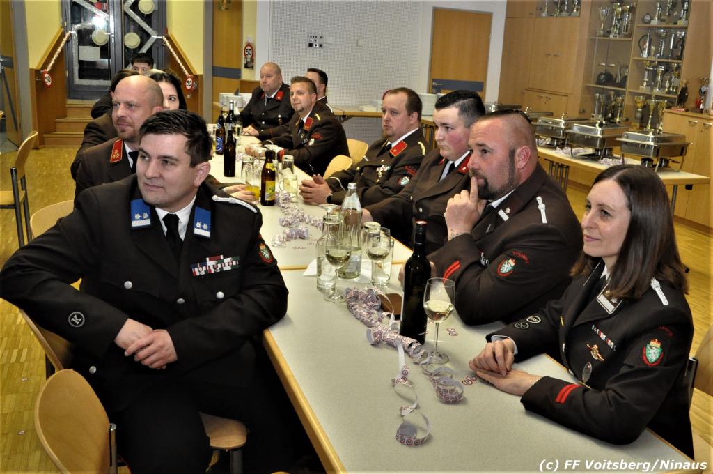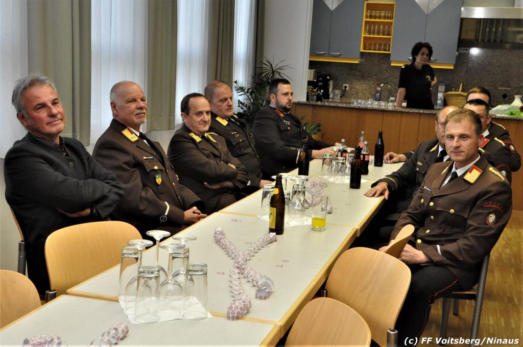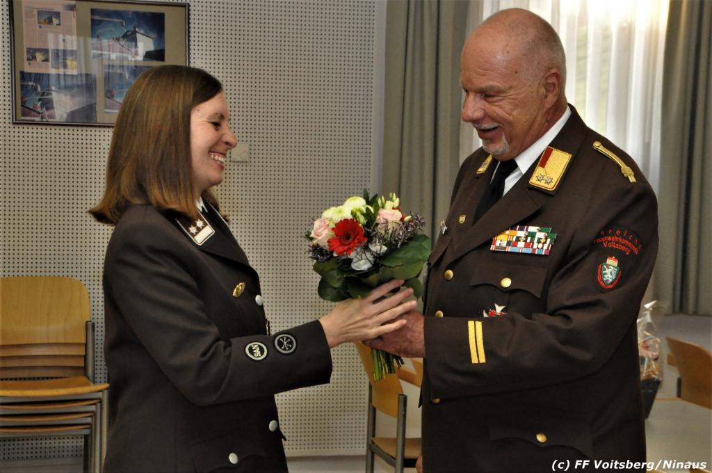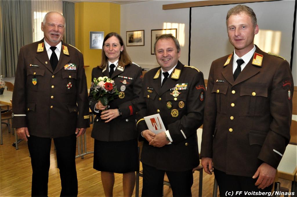 LFR Leitgeb gratulierte dem Jubilar, dankte namens des LFV und BFV für die Einladung und das große Engagement in seinen Funktionen und übergab ein Präsent. Seiner ebenfalls bei der FF Voitsberg tätigen Lebensgefährtin OLM d. F. Julia Streit wurden von BR Gehr Blumen überreicht.