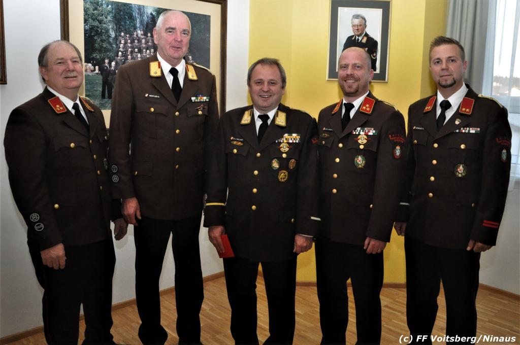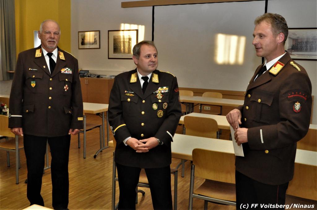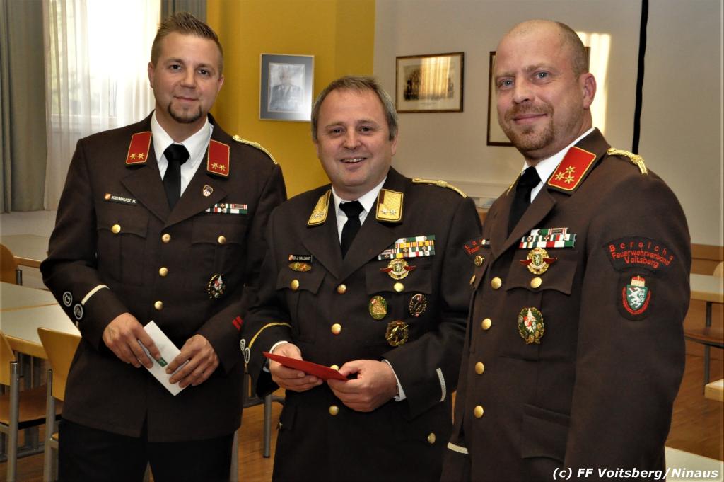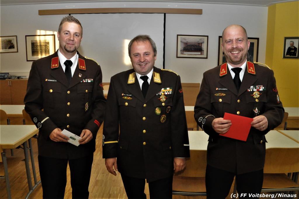 Seitens der FF Voitsberg gratulierten HBI (FH) DI Bernd Unger und OBI Harald Kremaucz für die agile Einsatztätigkeit und Kameradschaft und überreichten ein Erinnerungsgeschenk.