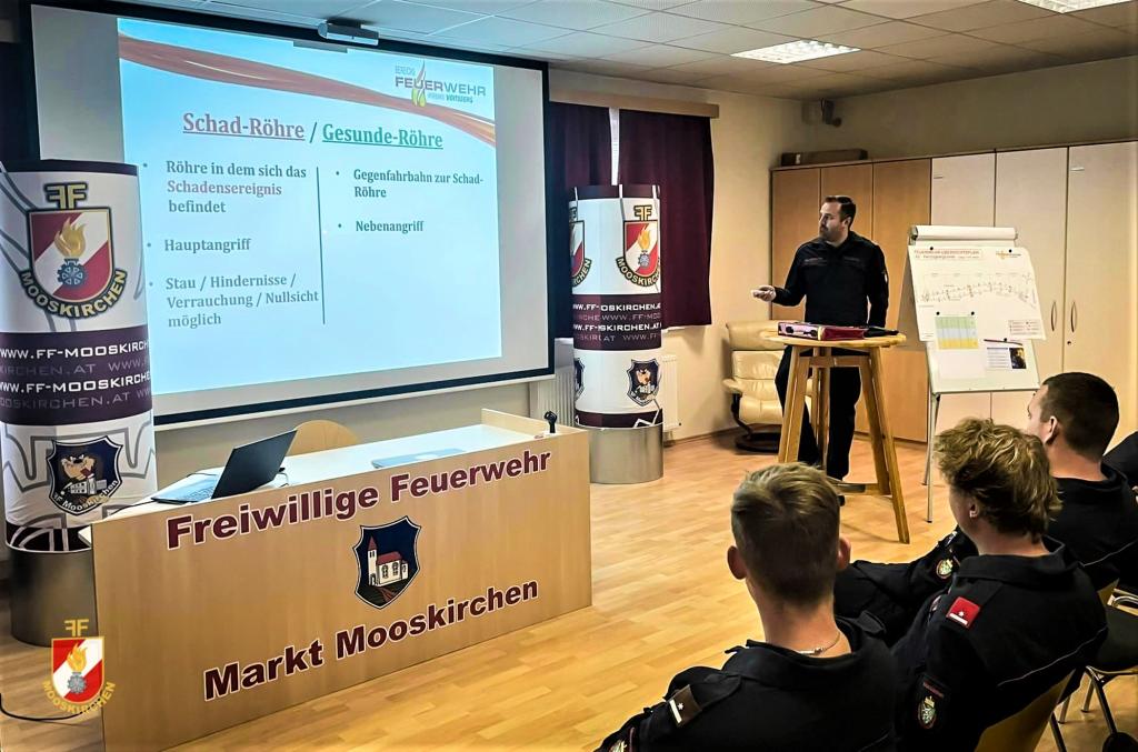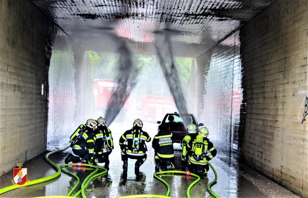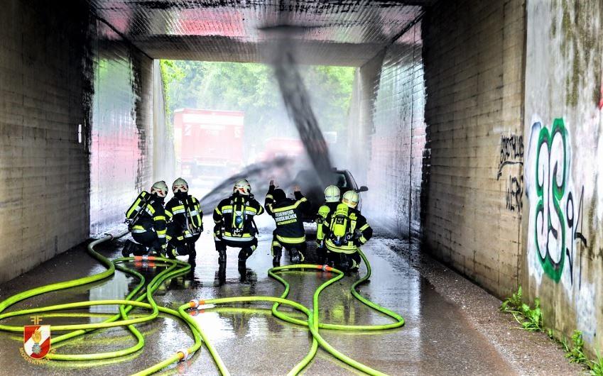 Nach der Begrüßung von ABI Josef Pirstinger am Samstagmorgen, wurden in zwei Theorieeinheiten den 27 Teilnehmer von 8 Feuerwehren, neben der Definition einiger Grundbegriffe und der Tunnelbaukunde, das richtige taktische Vorgehen sowie unterschiedliche Lösch-, Such- und Rettungstechniken im Tunneleinsatz präsentiert. Dieses theoretische Wissen konnte im Anschluss bei unterschiedlicher Übungen sogleich in die Praxis umgesetzt werden.