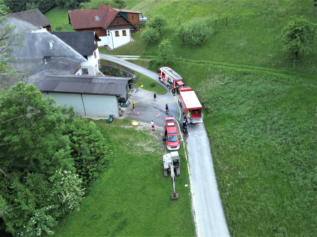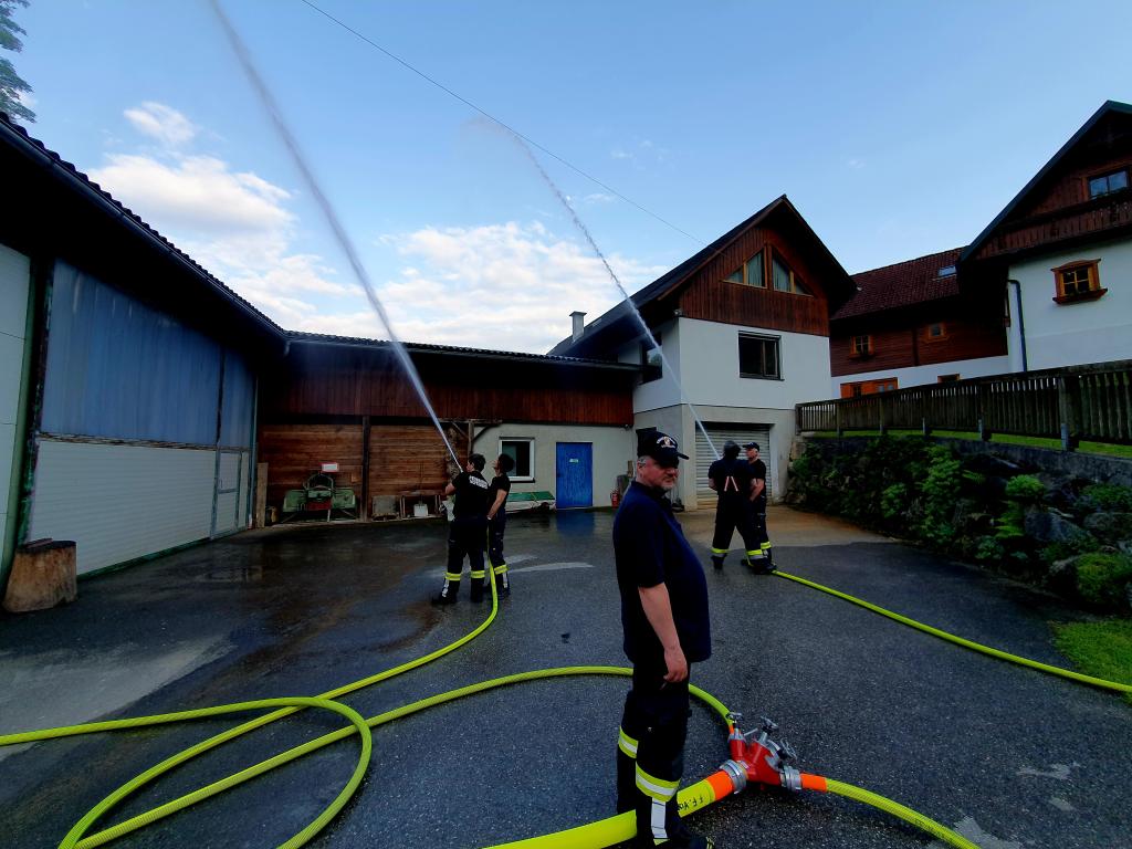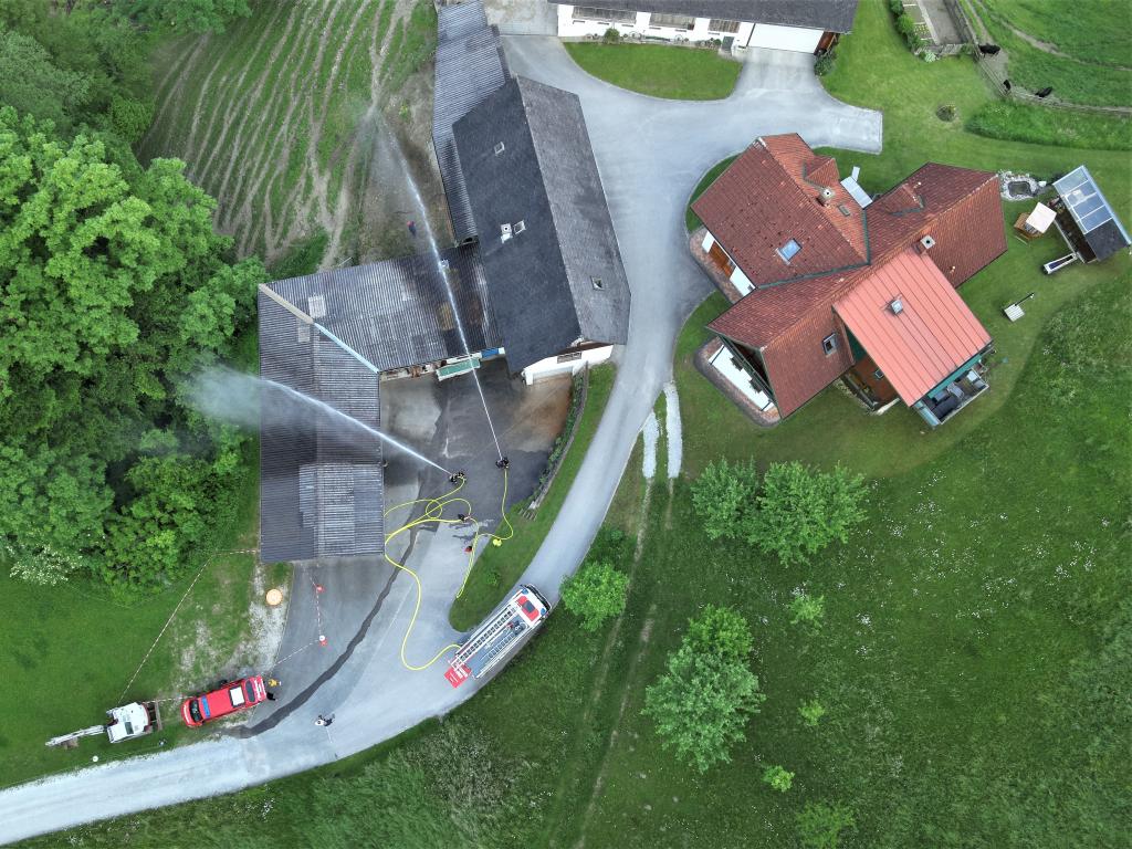 Als Übungsobjekt diente das landwirtschaftliche Anwesen in exponierter Lage der Familie Christof. Die Übungsleiter BR d. F. Johannes Vallant und LM Markus Roßmann erteilten den eingesetzten Kräften den Auftrag "Brand beim Anwesen Christof, Brandbekämpfung durchführen, Zubringleitung vom Gößnitzbach herstellen".
