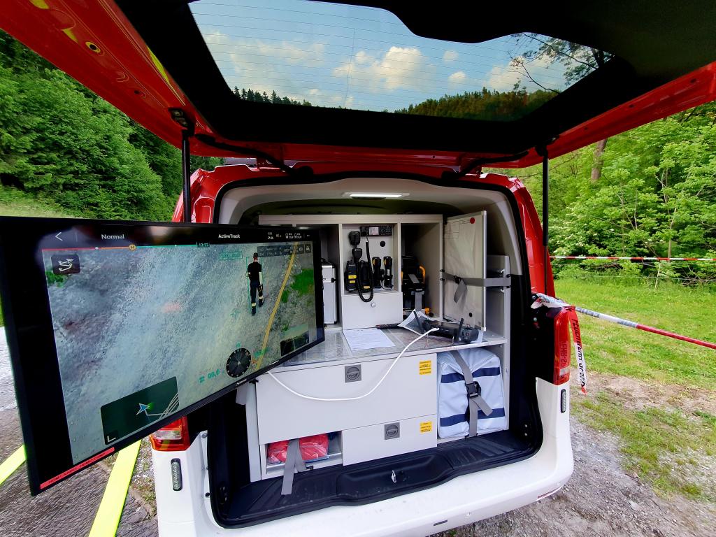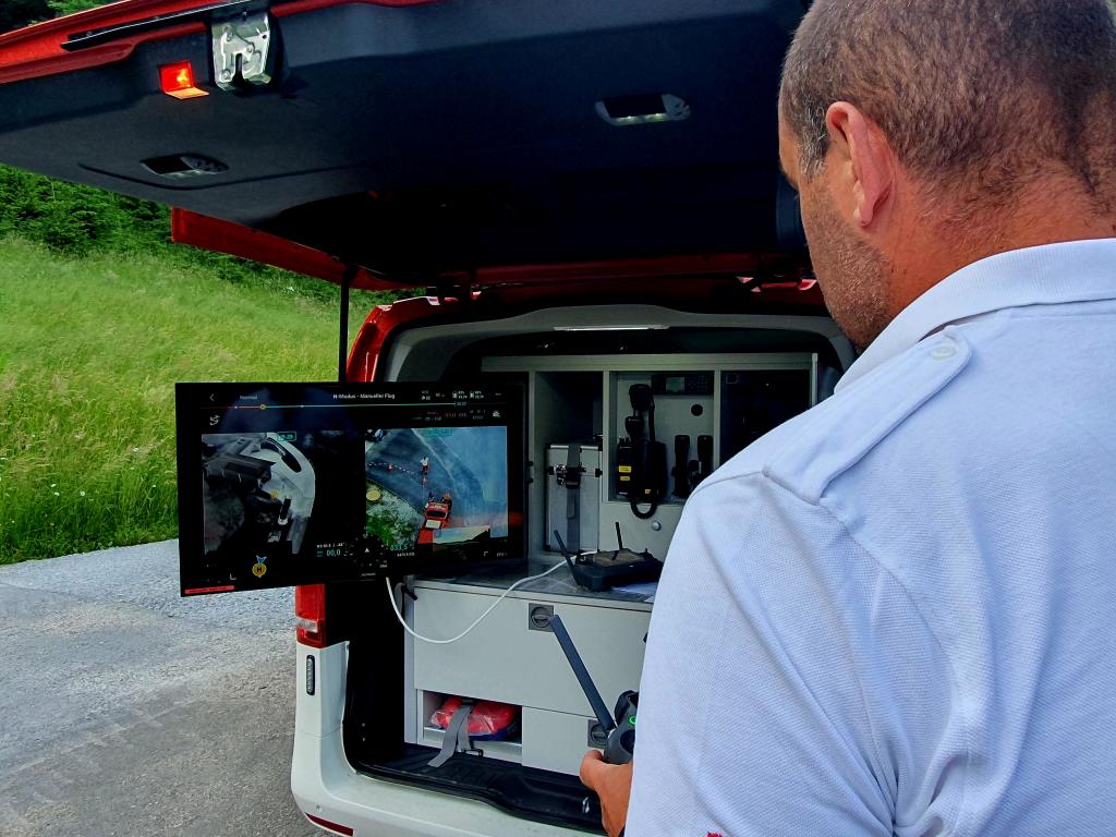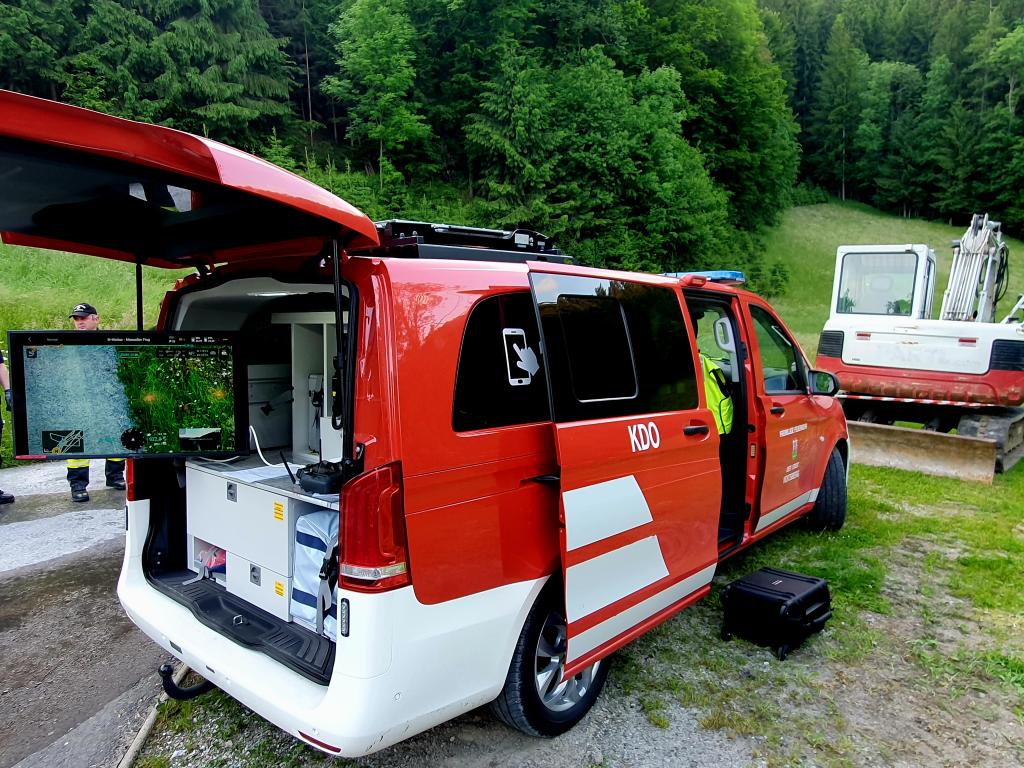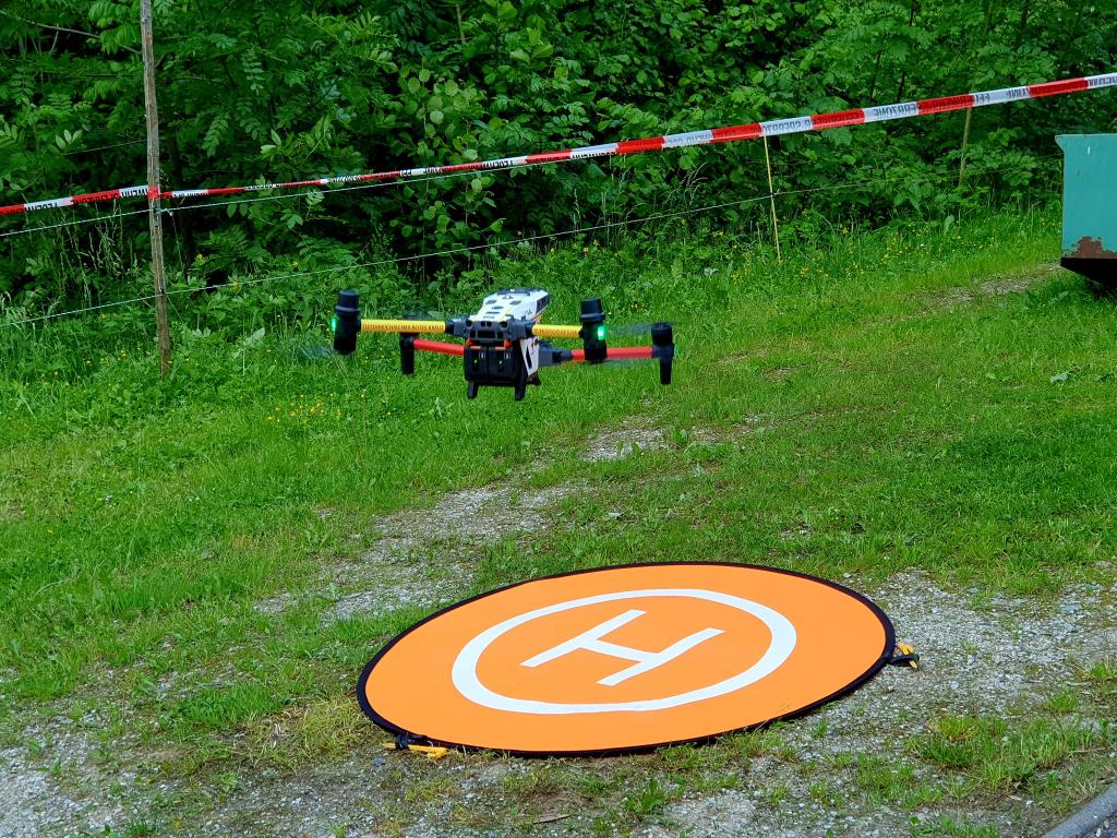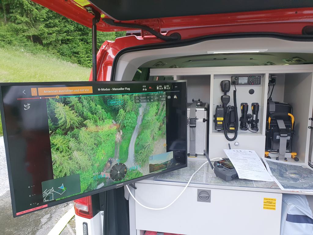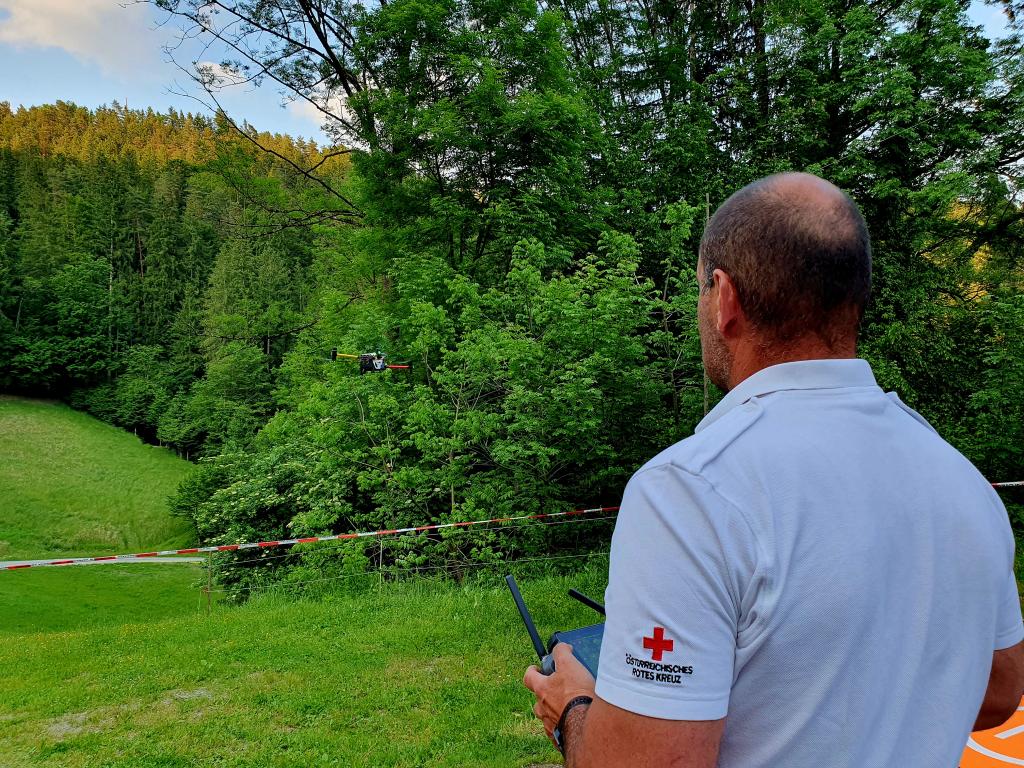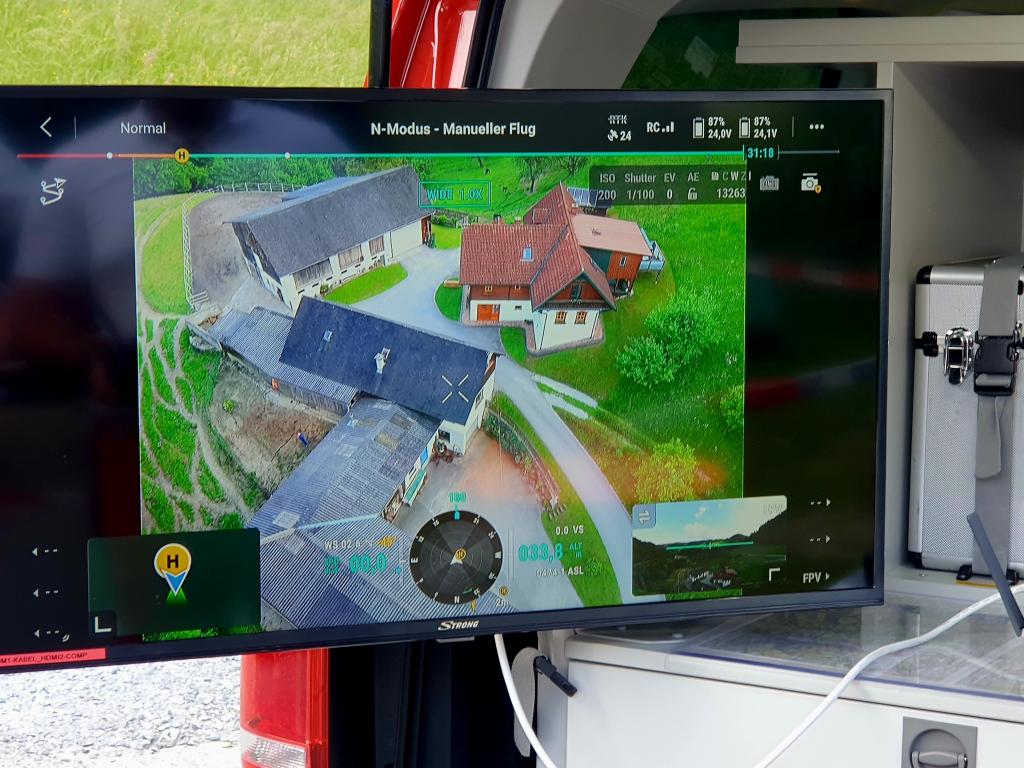Ebenfalls war das Rote Kreuz mit 2 Drohnenpiloten in diese Übung eingebunden. Die Drohne mit Wärmebildkamerafunktion kann uns im Einsatzfall bei der Lageerkundung und beim Aufspüren von Glutnestern behilflich sein.