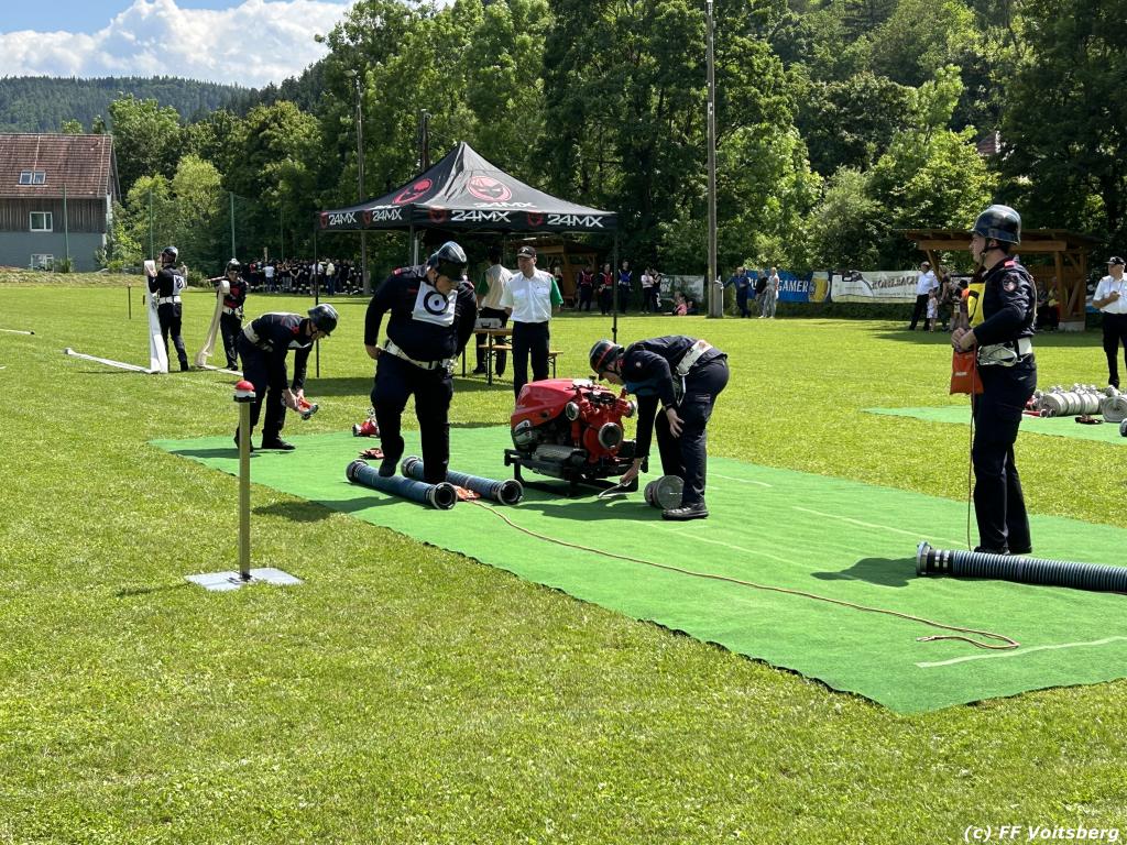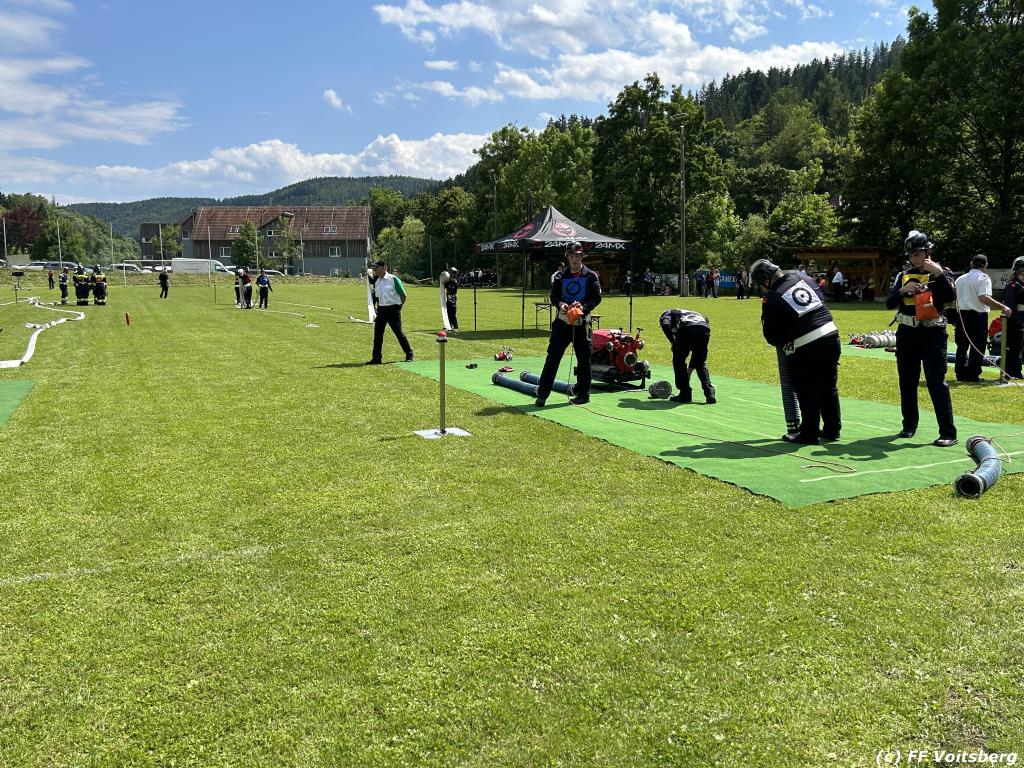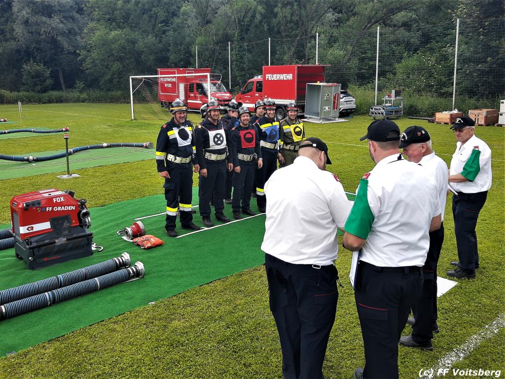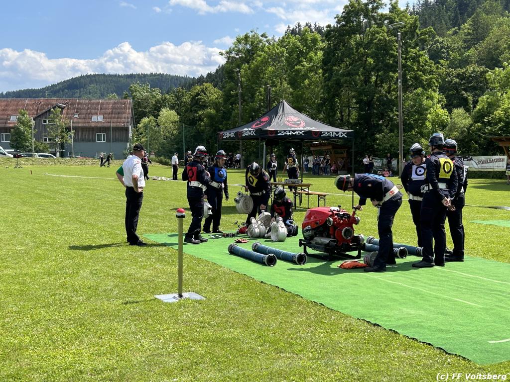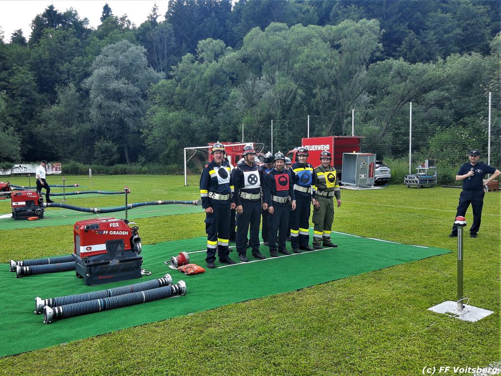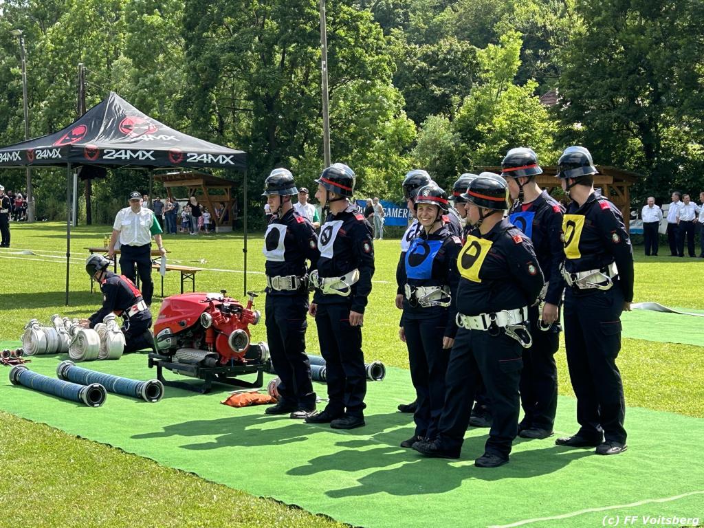 VOITSBERG, am 17.06.2023 „Brandobjekt geradeaus, Wasserentnahmestelle der Bach, Verteiler nach zwei B–Längen, Angriffstrupp legt Zubringleitung mit je zwei C–Längen, erstes und zweites Rohr vor.“ lautete der Angriffsbefehl für 48 Gruppen beim diesjährigen Bereichsfeuerwehrleistungsbewerb in Södingberg.