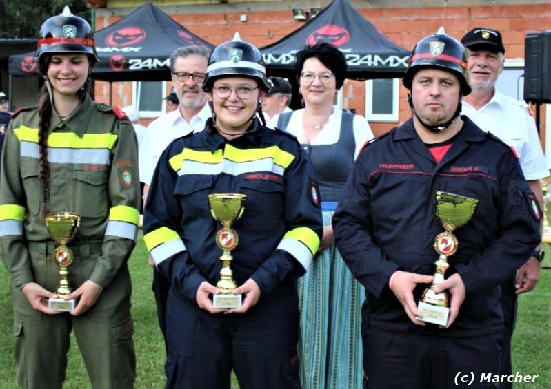 Unsere Feuerwehr nahm mit einer Gruppe in Bronze und Silber ebenfalls an diesem Wettkampf teil. Beim Durchgang in Bronze kassierten wir leider 20 Fehlerpunkte und konnten so nicht um die vorderen Plätze mitkämpfen. In Silber konnte sich unsere Gruppe mit einer tollen Leistung und 0 Fehlerpunkten den Sieg in der Wertungsklasse Silber A Bereich Voitsberg sichern. Bei der anschließenden Siegerehrung konnte BI René Sorger den Siegerpokal aus den Händen von Bereichsfeuerwehrkommandant BR Ing. Klaus Gehr entgegennehmen. Unsere beiden Kommandanten nahmen gemeinsam mit den Führungskräften des Abschnittes 2 ebenfalls am Bewerb teil. Ein Dank gilt auch den 4 Kameraden, welche im Bewerterstab tätig waren.