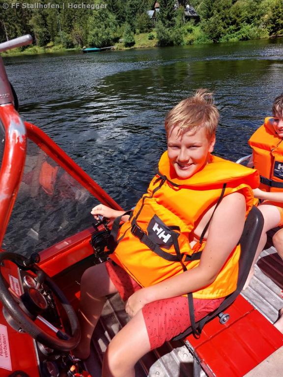 Zeitgleich waren dort die Jugendlichen der Feuerwehren Kainach und Edelschrott bei einem Zeltlager. Im Zuge der Übung konnte den Jugendlichen das Einsatzboot mit den verschiedenen Einsatzmöglichkeiten wie z. B. "Mann über Bord" gezeigt werden.