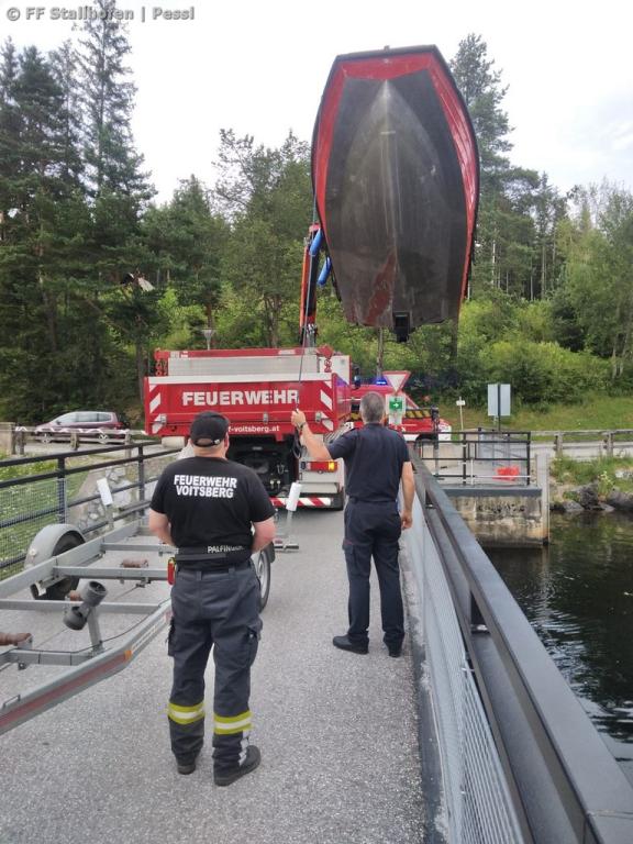 VOITSBERG, am 29.07.2023 Am Nachmittag des 29.07.2023 führte die Feuerwehr Stallhofen mit dem Einsatzboot eine Übung auf dem Packer Stausee durch.