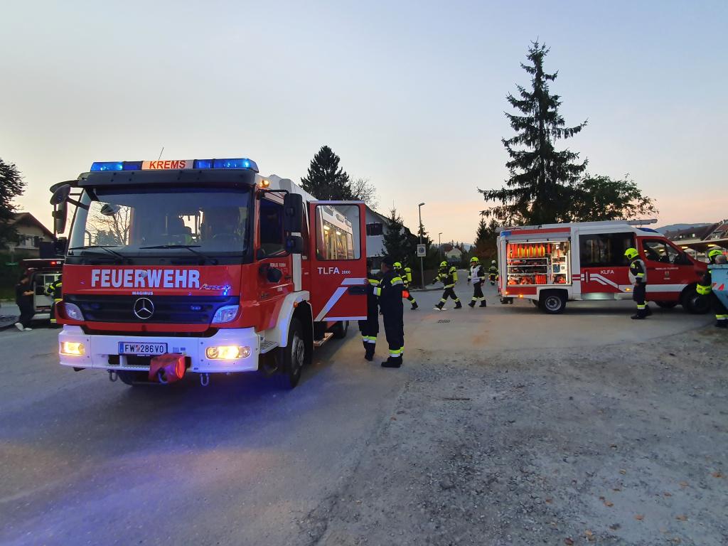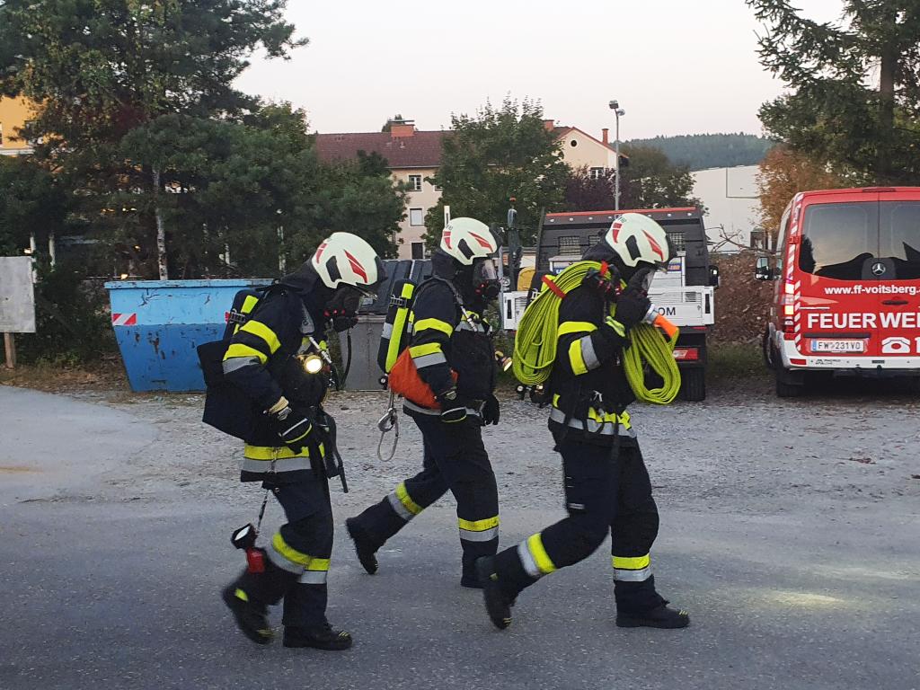 Umgehend wurde die FF Krems nachalarmiert und ein Atemschutztrupp begab sich zur Menschenrettung und Brandbekämpfung ins stark verrauchte Gebäude. Gleichzeitig wurde von einem Überflurhydranten in der Rosenberggasse eine Zubringleitung zum HLF4 Voitsberg aufgebaut. Ein Atemschutztrupp der FF Krems begab sich wenig später ebenfalls in die Lackierhalle und unterstützte den bereits eingesetzten Trupp bei der Personensuche. Nach rund einer halben Stunde konnte Brand aus gegeben werden. Alle 6 Vermissten wurden gerettet und den Feuerwehrsanitätern übergeben. Im Anschluss wurde die Halle mit 3 Drucklüftern belüftet.