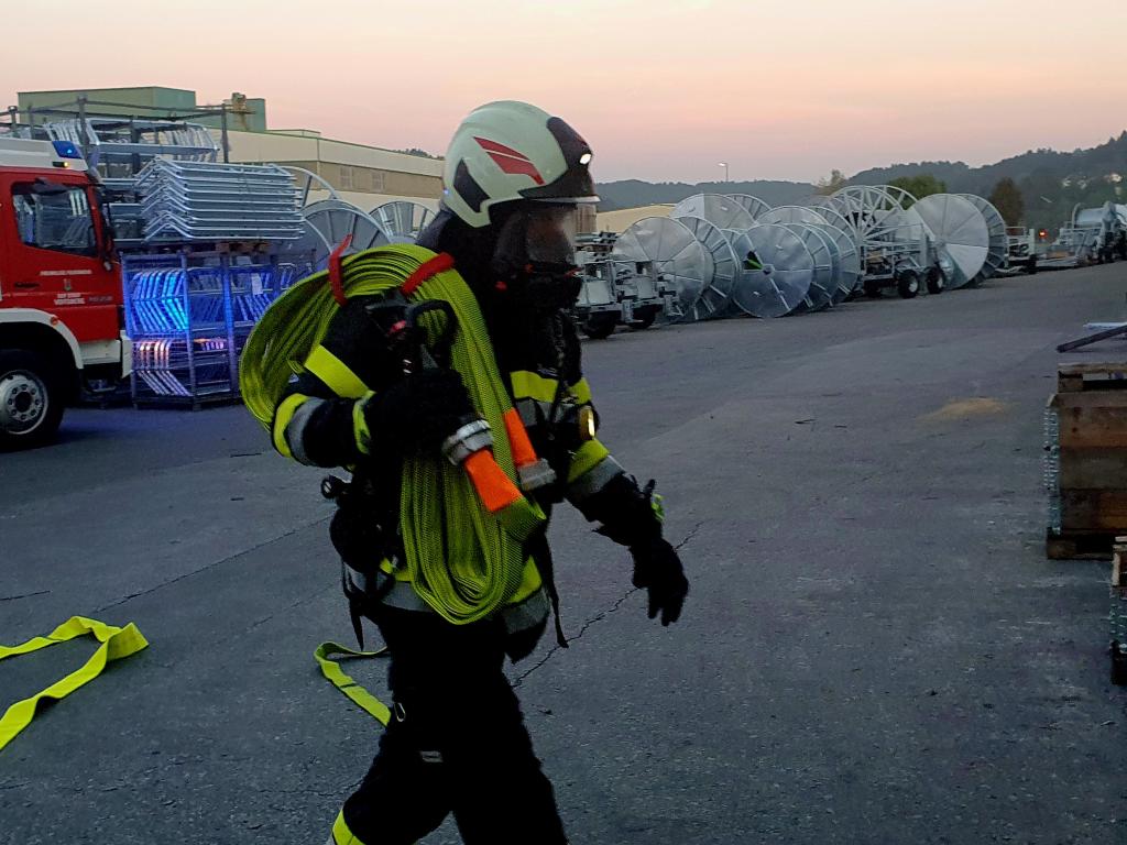 VOITSBERG, am 02.10.2023 Am 02.10.2023 um 18:24 Uhr löste die automatische Brandmeldeanlage im Werk 2 der Röhren- und Pumpenwerk Bauer GmbH in Voitsberg einen Übungsalarm aus. Bei Eintreffen der ortszuständigen Feuerwehr Voitsberg bot sich dem Einsatzleiter BM Alexander Wallner folgendes Szenario: