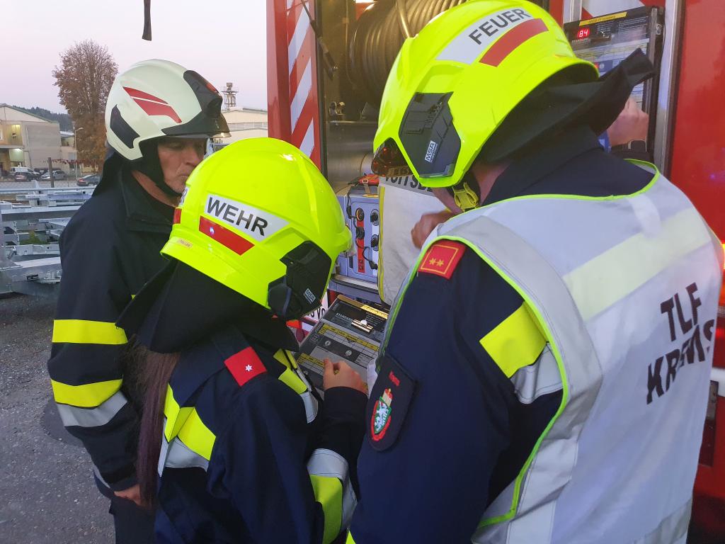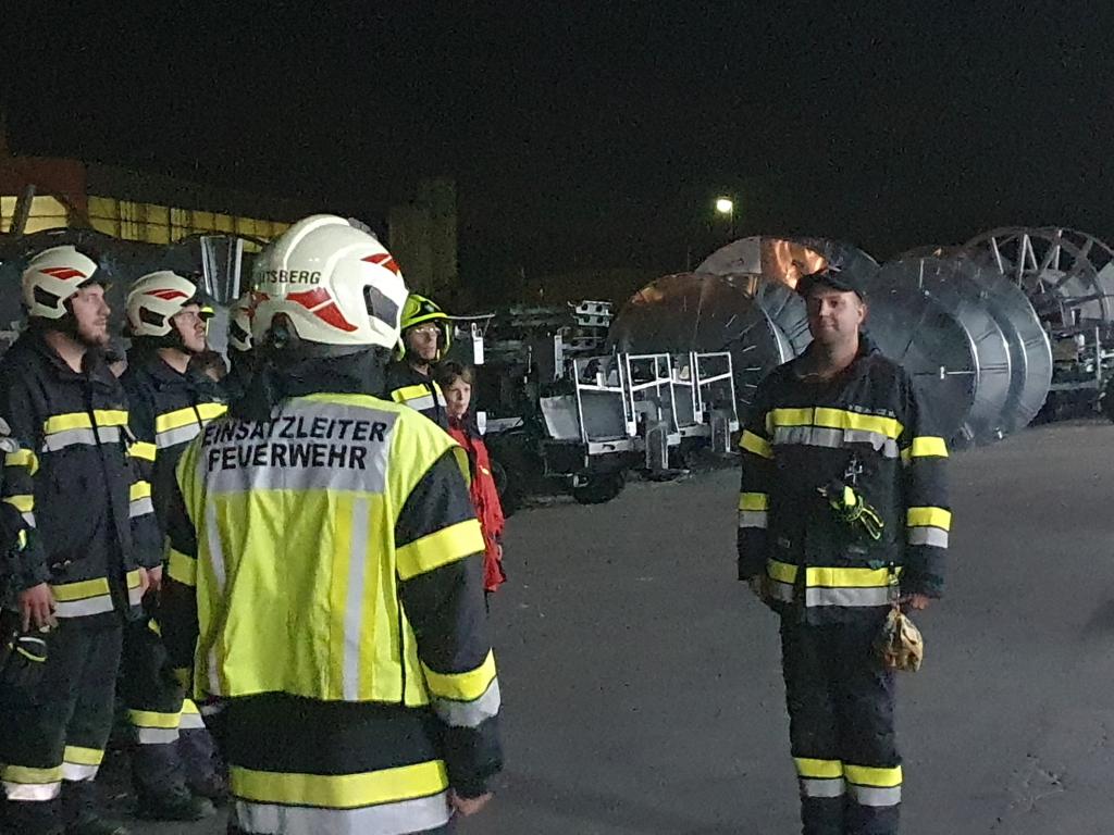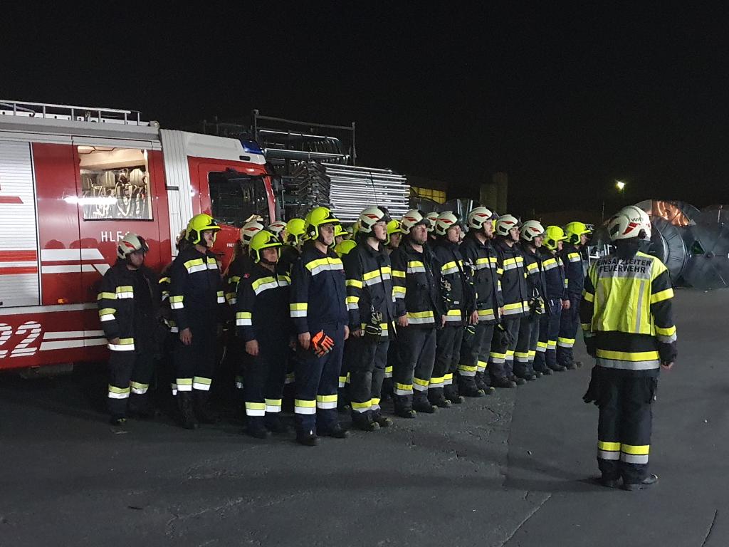 Eingesetzt waren 7 Fahrzeuge mit 47 Übungsteilnehmern. Bei der Abschlussbesprechung bedankte sich OBI Harald Kremaucz bei Josef Langmann und Hans Peter Benedikt der Röhren- und Pumpenwerk Bauer GmbH für die Bereitstellung des Übungsobjektes und die Verpflegung.