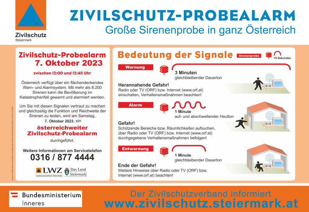 VOITSBERG, am 07.10.2023 Am 07. Oktober 2023 fand österreichweit wieder der Zivilschutzprobealarm statt. Mehrere Kameradinnen und Kameraden besetzten unsere 5 Sirenenstandorte im Stadtgebiet und überprüften die Funktion.