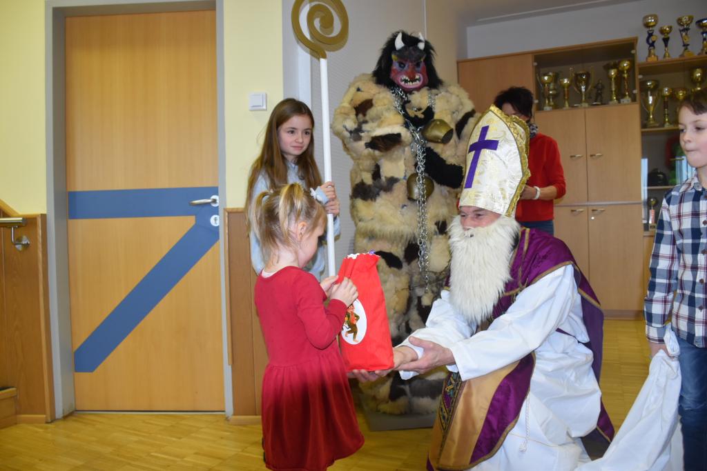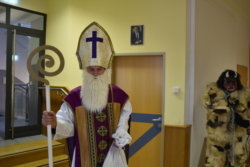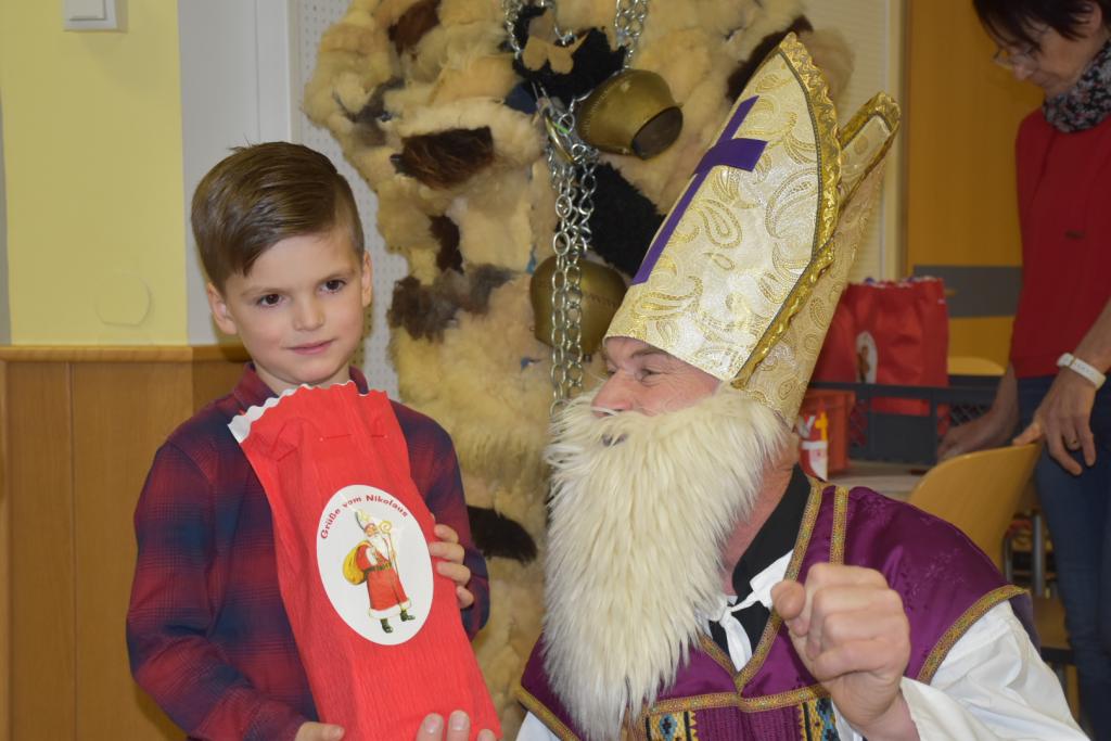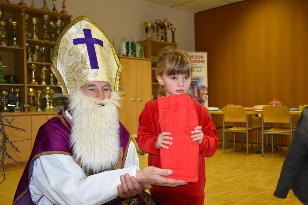 Die Freude war groß und so brachte unser Gast mit seiner Bischofsmütze und seinem Stab die Kinderaugen zum Strahlen. Nach einer kurzen Ansprache verteilte der Nikolaus mitgebrachte Geschenke an die Kinder. Im Anschluss wurde gemeinsam noch ein bekanntes Nikolauslied angestimmt, ehe es zum gemütlichen Teil und zur Spielecke überging.