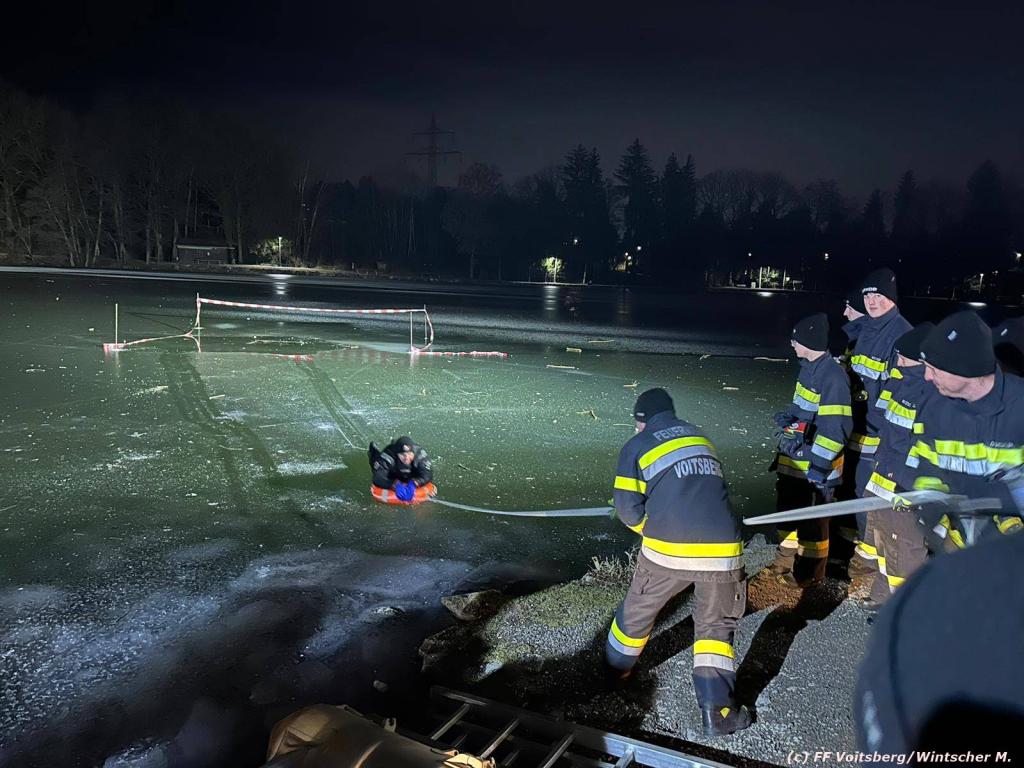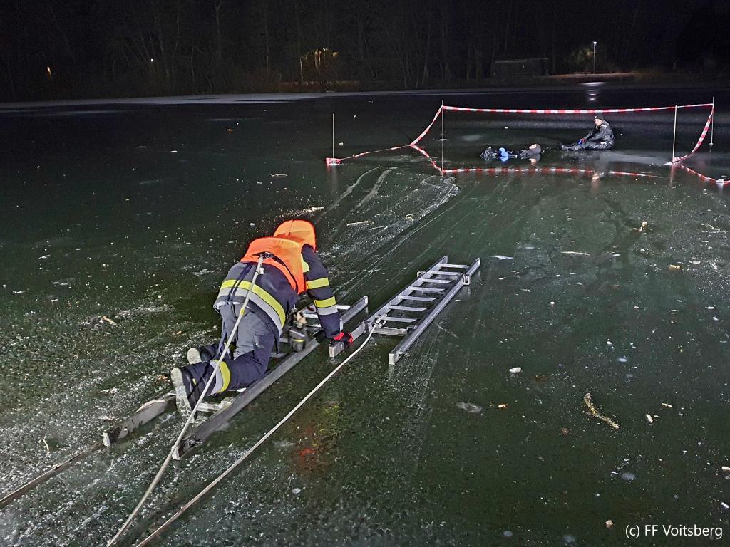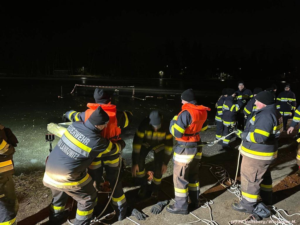 VOITSBERG, am 22.01.2024 Am Abend des 22. Jänner 2024 wurde von den Feuerwehren Voitsberg und Maria Lankowitz eine Gemeinschaftsübung zum Thema Eisrettung abgehalten.