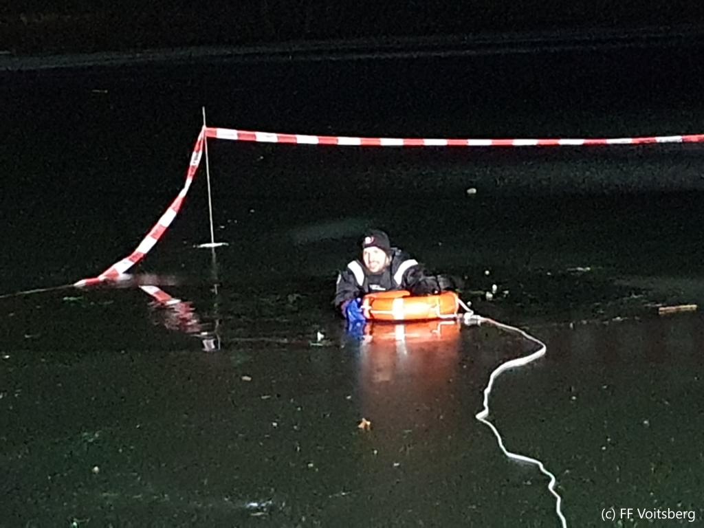 Ein besonderer Dank gilt den beiden Einsatztauchern der FF Maria Lankowitz (Tauchstaffel BFV Voitsberg), welche sich trotz der tief winterlichen Temperaturen ins eiskalte Wasser begaben.