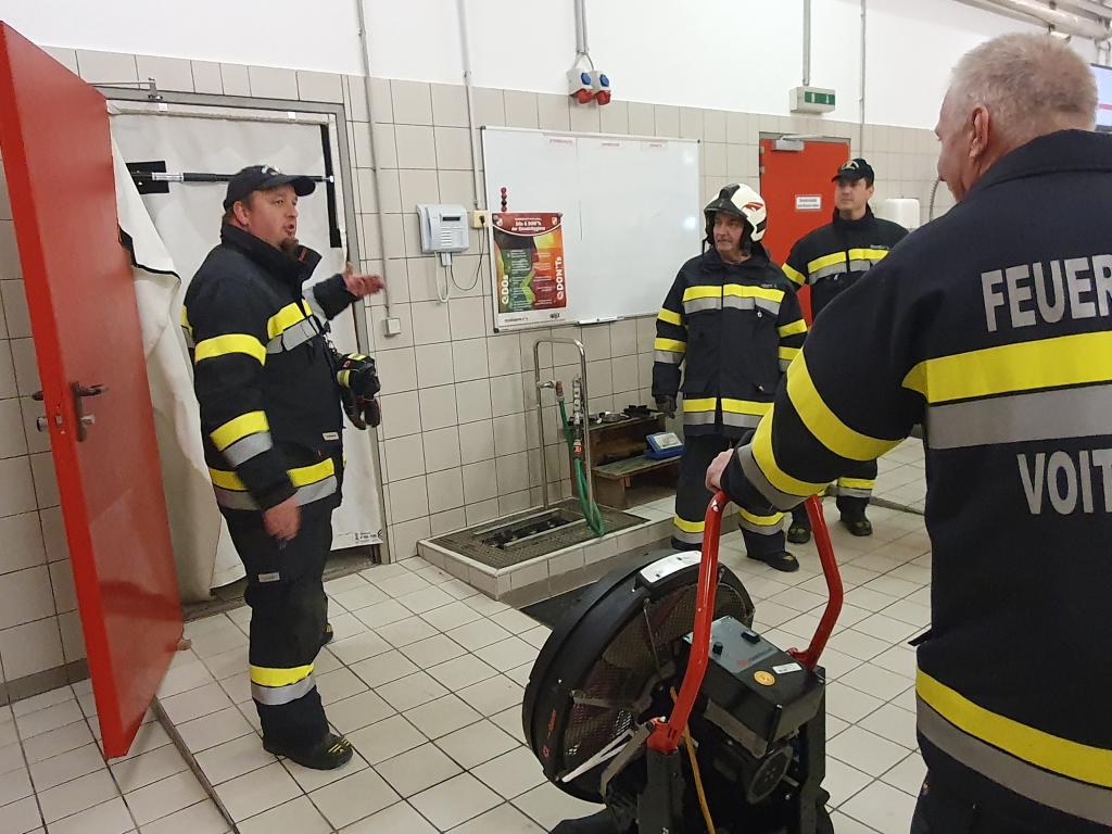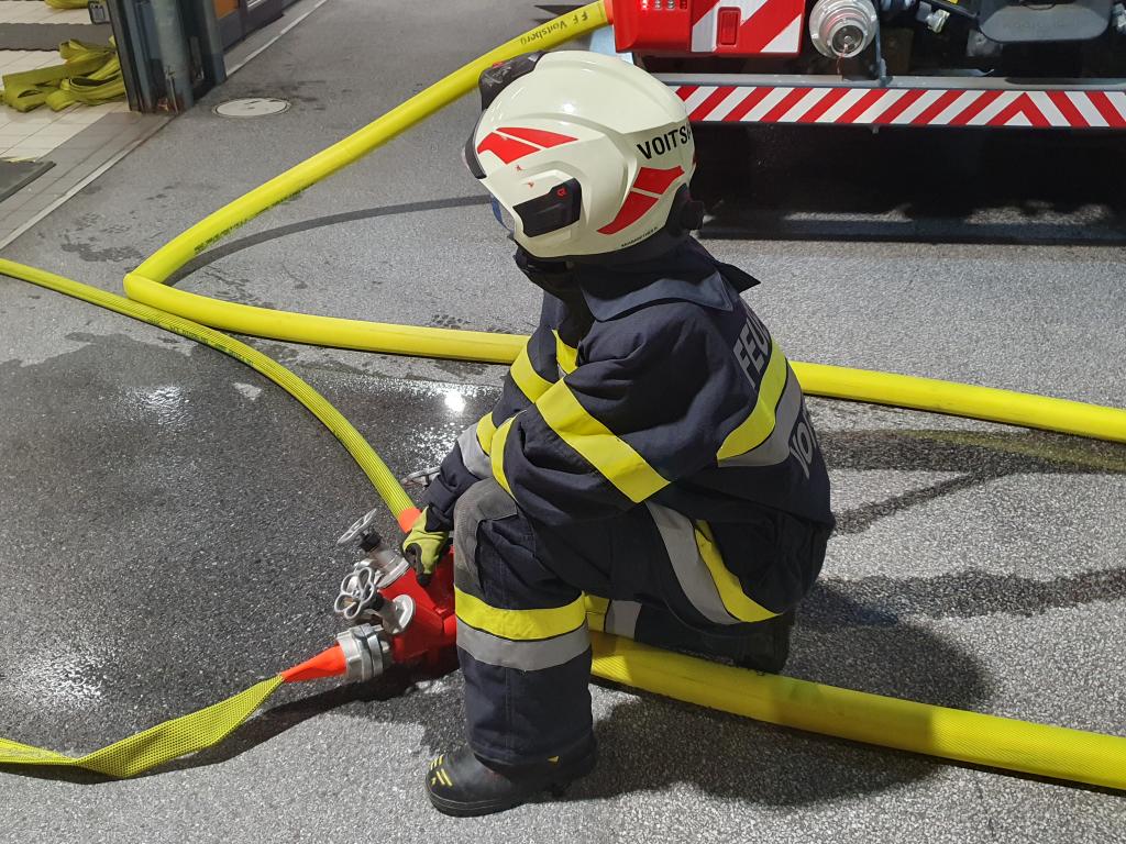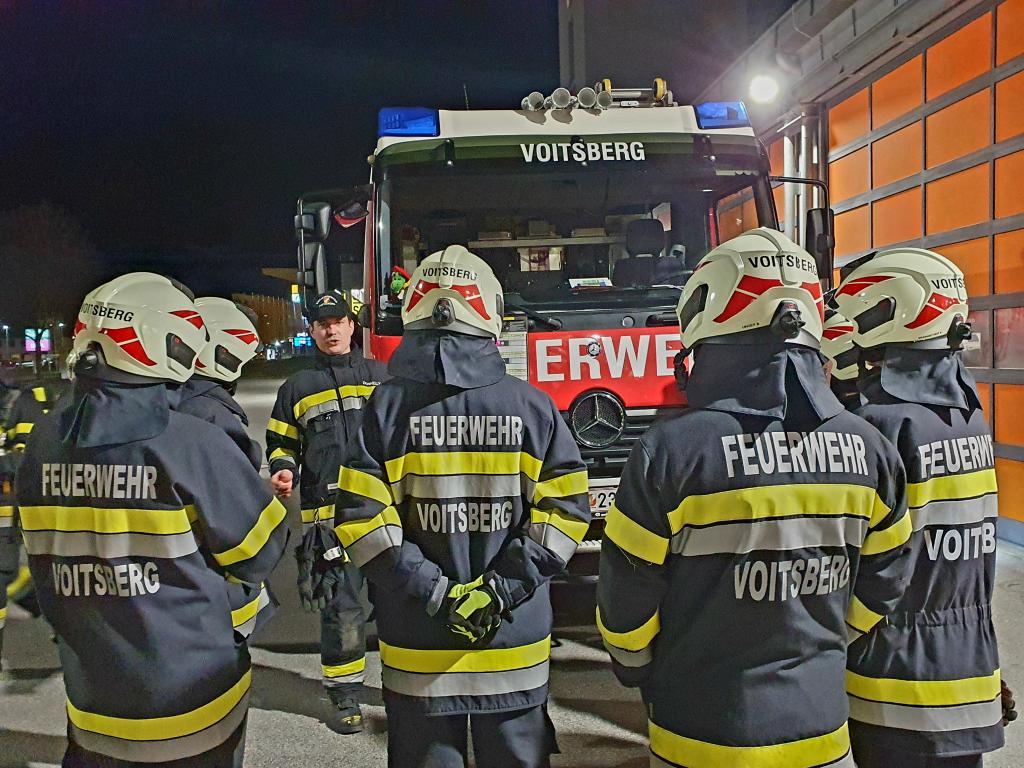VOITSBERG, am 04.03.2024 Am Abend des 04.03.2024 wurde am Gelände unseres Feuerwehrhauses eine Ausbildungsübung mit dem Schwerpunkt Zimmerbrand abgehalten. 3 Atemschutztrupps wurden nacheinander zur Bekämpfung eines Brandes in der Atemschutzwerkstatt eingesetzt, während sich die weiteren Besatzungen unserer Hilfeleistungsfahrzeuge um den Löschwasserbezug, die Atemschutzaußenüberwachung und das Rauchmanagement kümmerten. Im Anschluss bestand für unsere Kameradinnen und Kameraden die Möglichkeit das Poly Portex Löschgerät zu testen.
