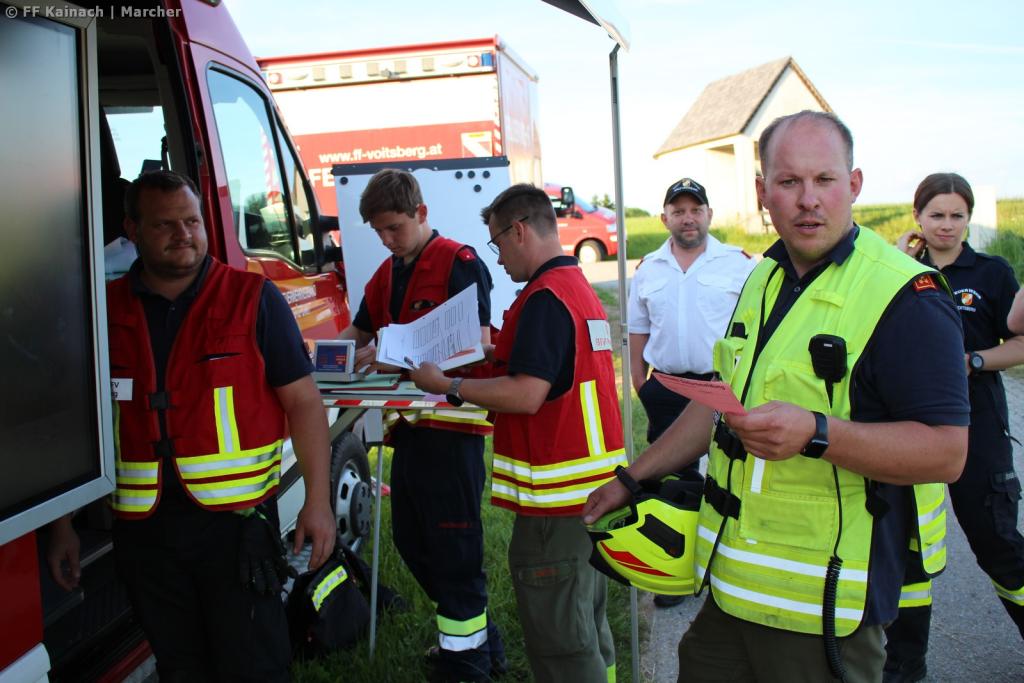 Um 18:10 Uhr lautete der Übungseinsatzbefehl für die FF Södingberg „Wirtschaftsgebäudebrand mit zehn vermissten Personen sowie Forstunfall mit zwei eingeklemmten Personen beim Anwesen Köppel in Södingberg.“ Rund 10 Minuten später ließ der Einsatzleiter die Feuerwehren des Abschnitt 2 sowie die Feuerwehren Stiwoll und St. Pankrazen – Gschnaidt aus dem Bezirk Graz Umgebung nachalarmieren.