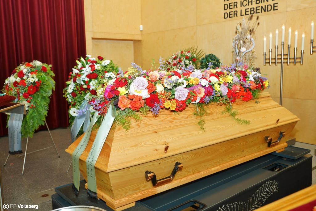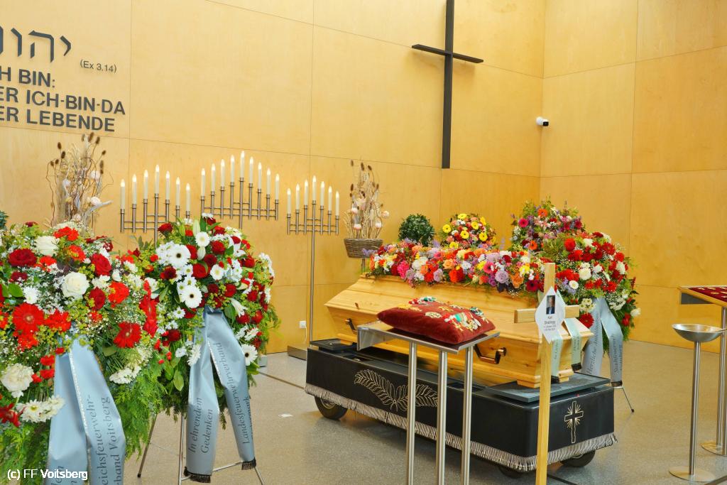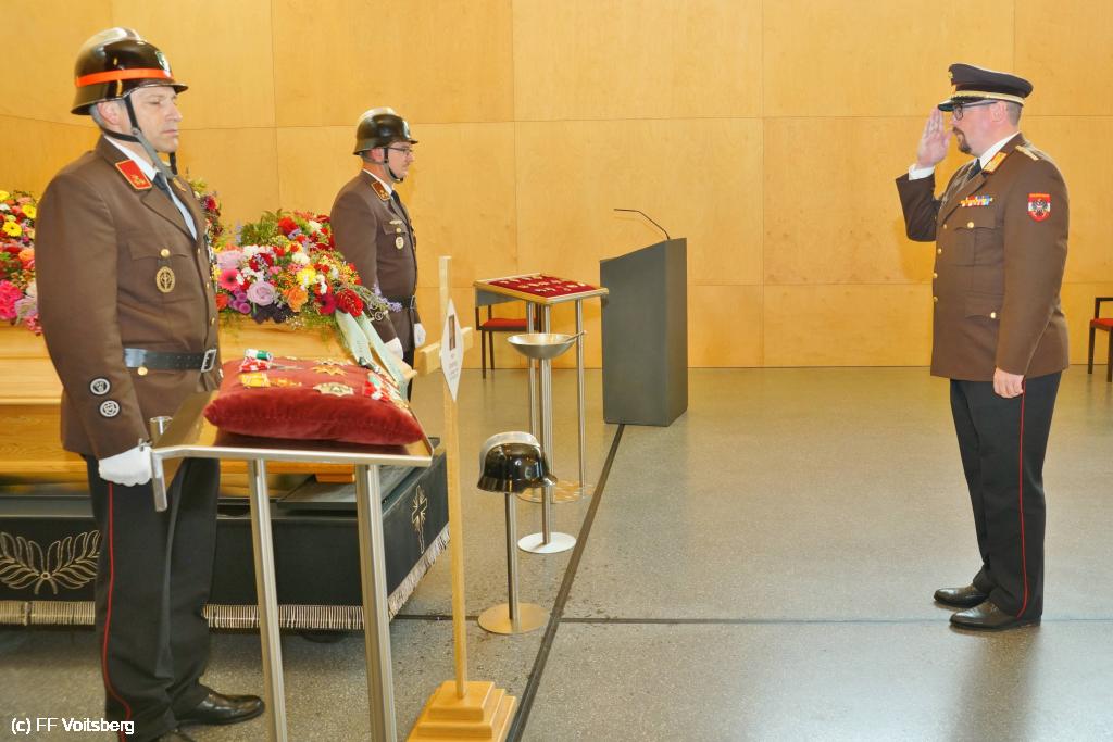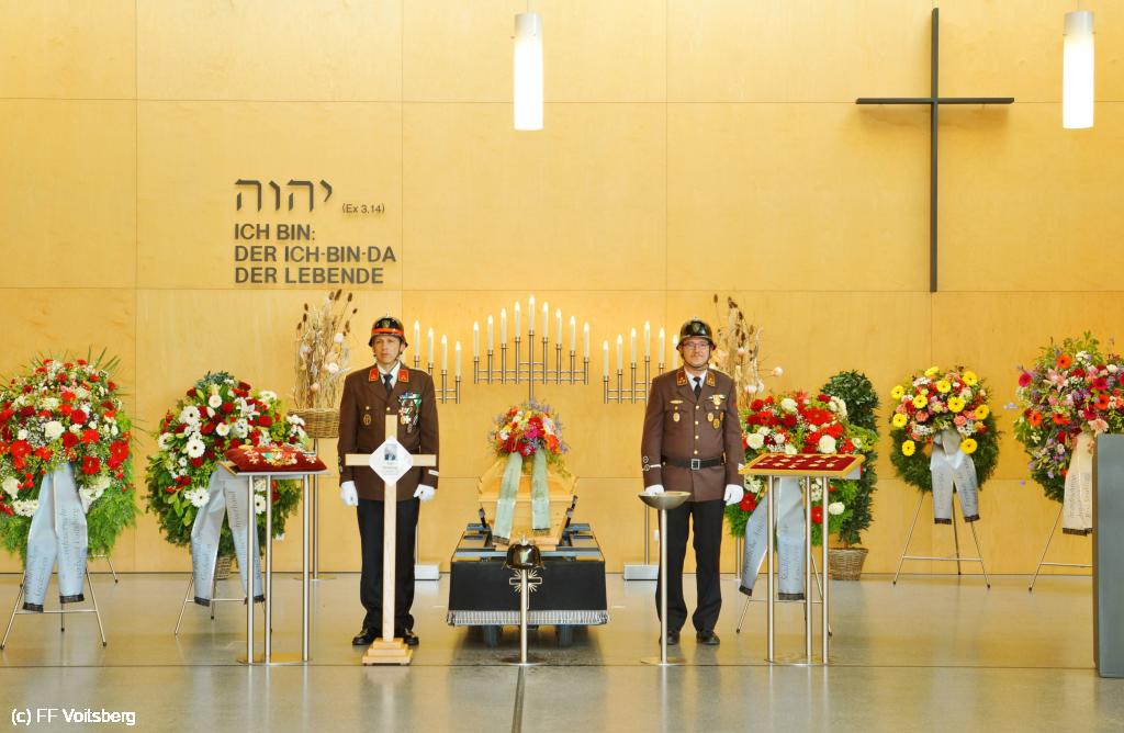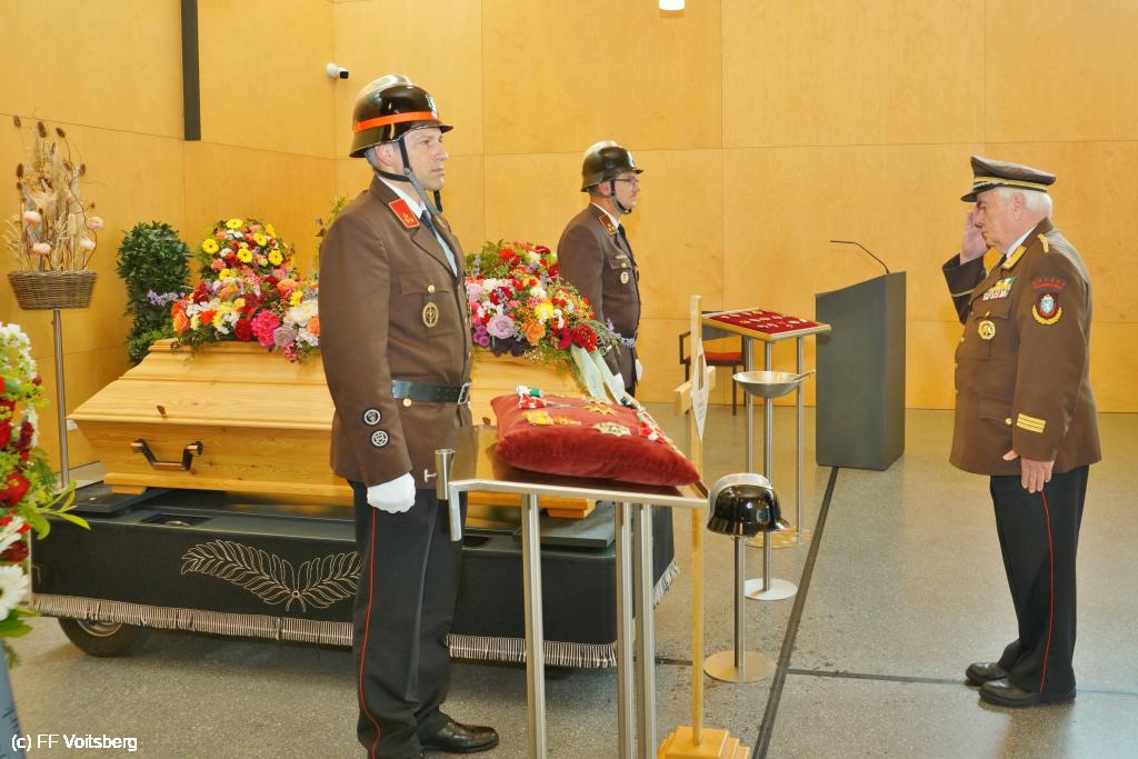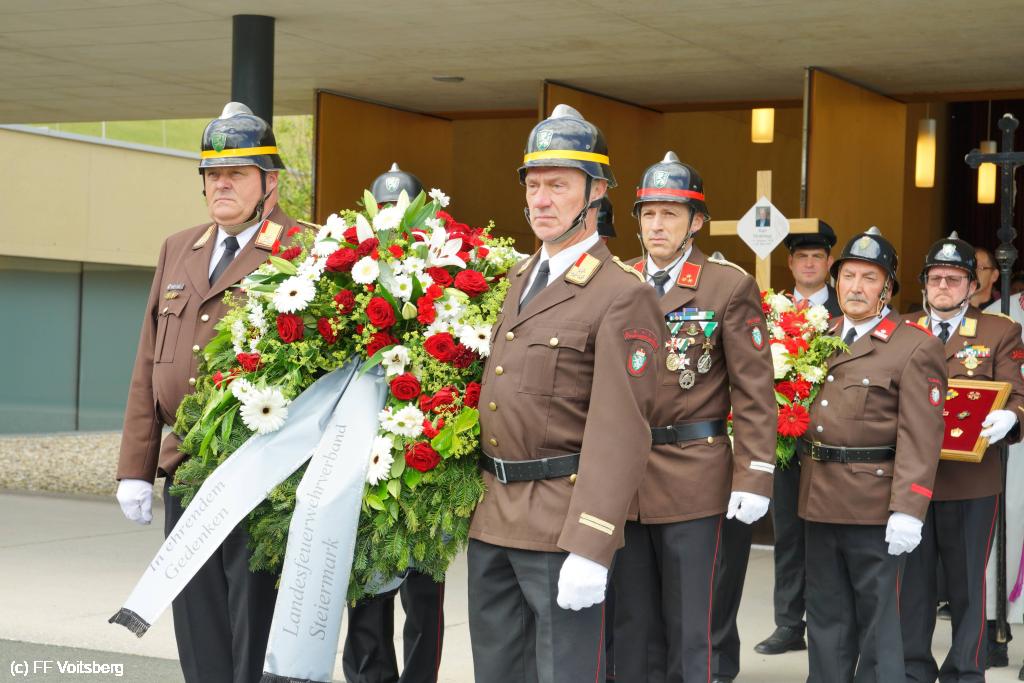 Die Trauergemeinde umfasste sowohl die steirische als auch die österreichische Feuerwehrspitze. An der Spitze aller Trauergäste standen Landesfeuerwehrkommandant Reinhard Leichtfried, Feuerwehrpräsident Robert Mayer und Bereichsfeuerwehrkommandant LBDS Christian Leitgeb, Abordnungen aus den Bezirken und des Bereichsfeuerwehrverbandes Voitsberg und seiner FF Voitsberg, welche unter dem Kommando von BR Ing. Klaus Gehr der Trauerfeier einen würdevollen Rahmen verliehen.