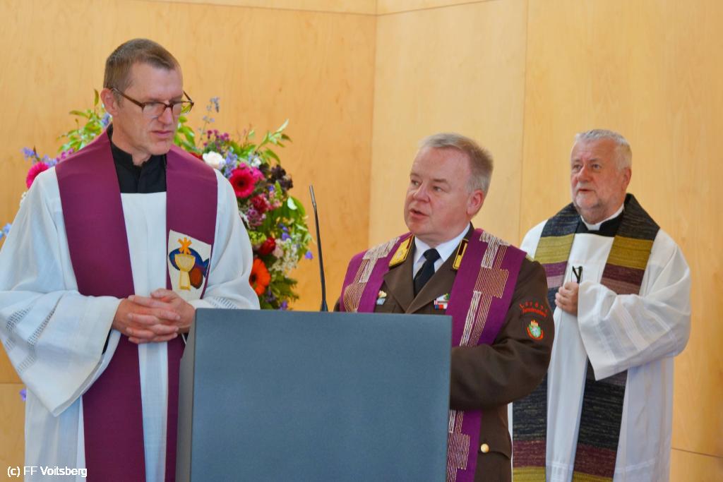 Die würdevolle Verabschiedungsfeier wurde liturgisch von Pfarrer Mag. Winfried Lembacher, Landesfeuerwehrkurat Superior Pater Dr. Michael Staberl sowie Pfarrer a.D. Mag. Anton Reinprecht gestaltet und von der Bergkapelle Hödlgrube-Zangtal und der Werkskapelle Bauer musikalisch umrahmt.