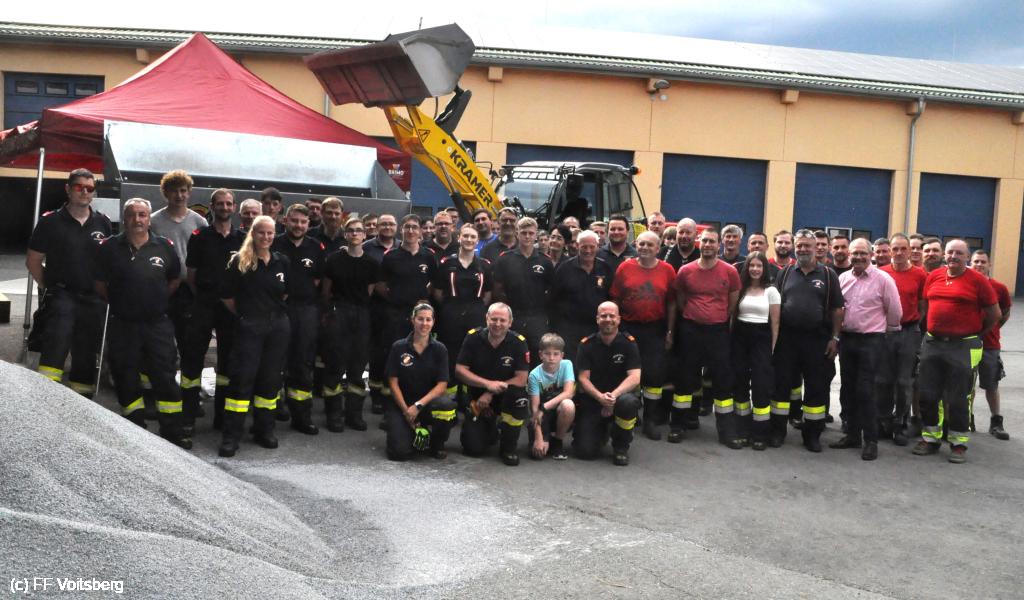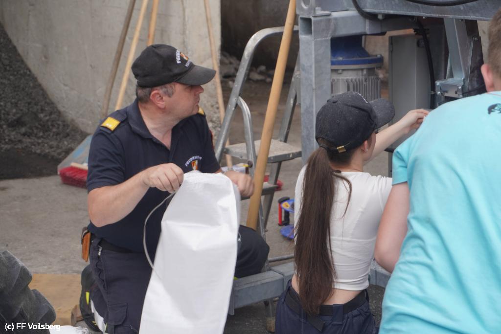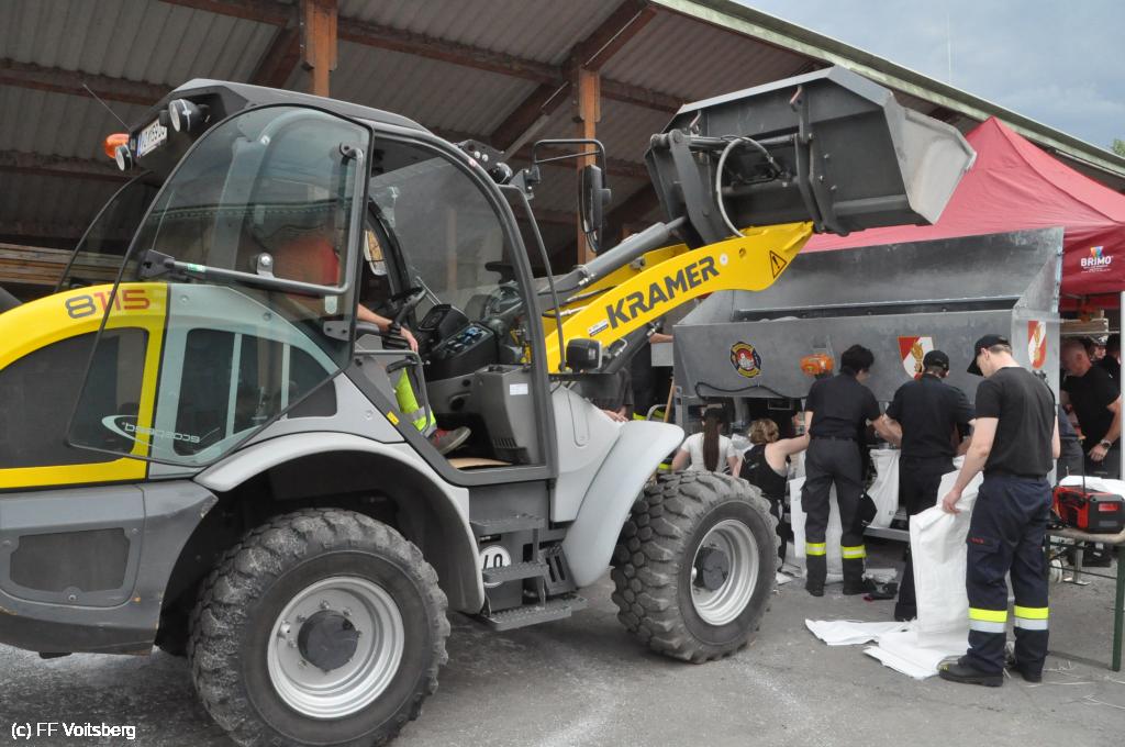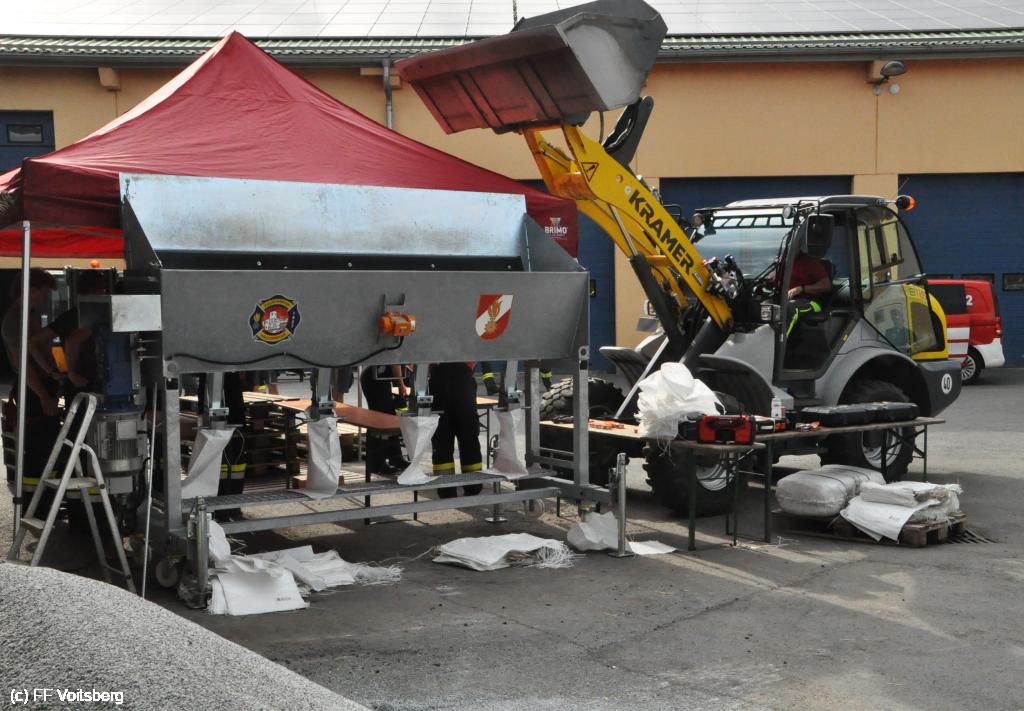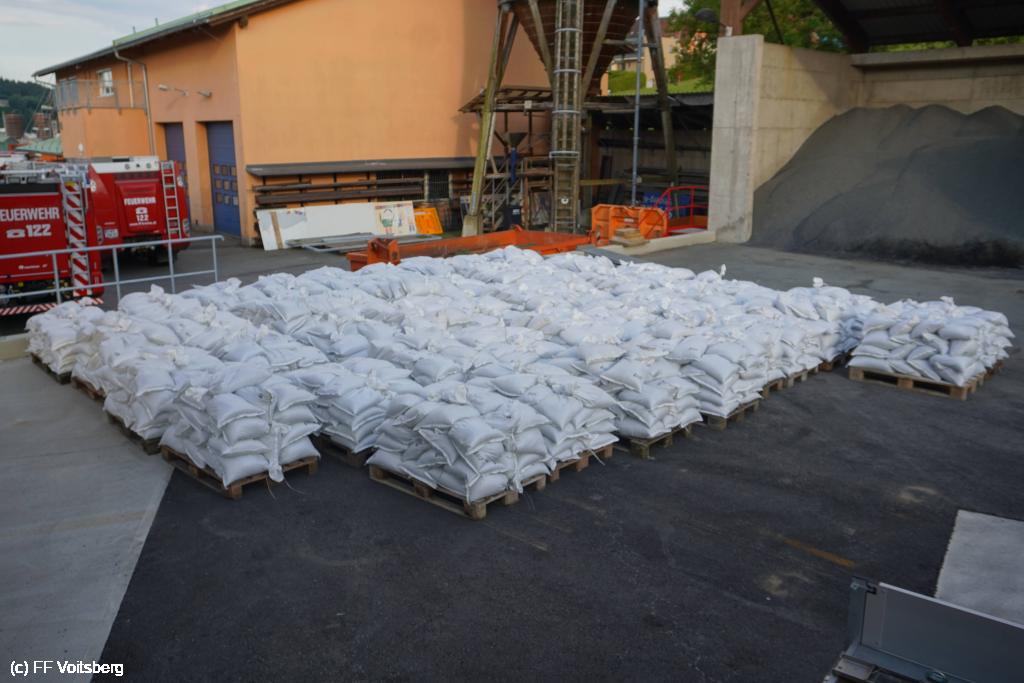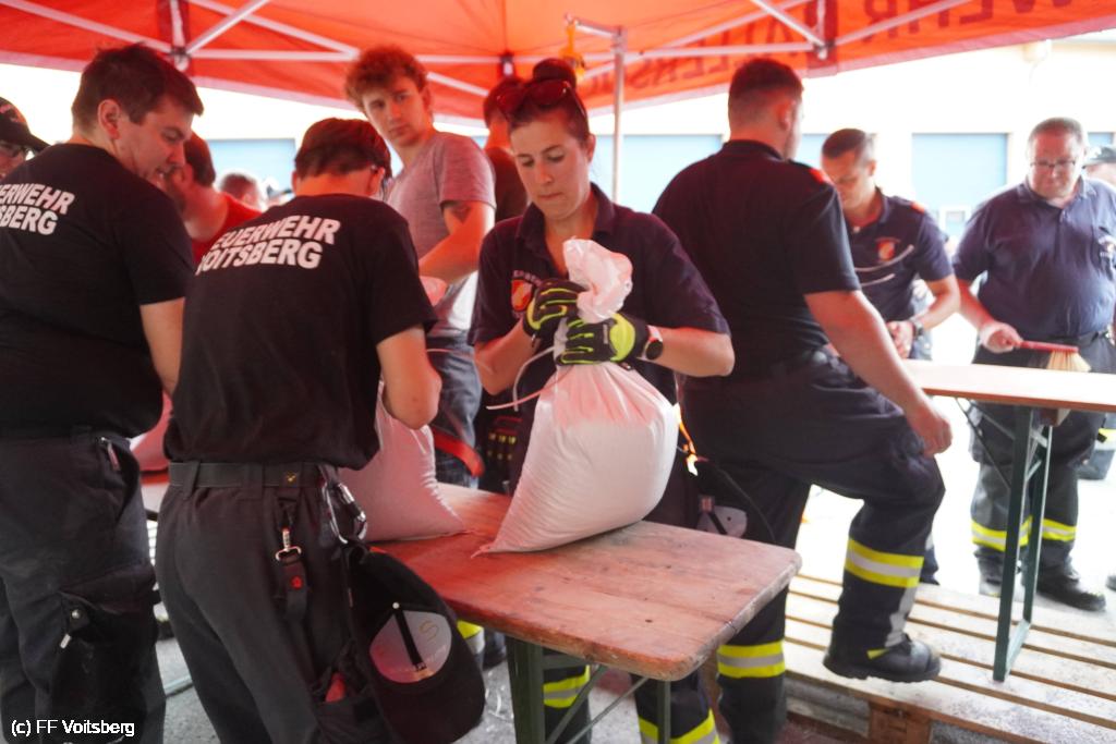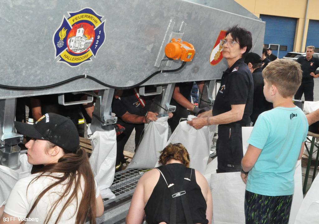 43 Personen aus den Feuerwehren Voitsberg und Krems, Mitarbeiter des städtischen Bauhofes Voitsberg sowie KameradInnen der FF Hallersdorf, welche für den BFV Voitsberg der Katastrophenstützpunkt ist, füllten am 17. Juni 2024 am Bauhof in Voitsberg tausende Sandsäcke mit der Sandsackfüllanlage für die Voitsberger Bevölkerung ab, um den Bewohnern die Möglichkeit zu geben, sich selbst vor Hochwasser zu schützen. Jeder kann bis zu 10 Sandsäcke gratis erwerben, bei sich lagern und im Unwetterfall Erstmaßnahmen von selbst setzen.