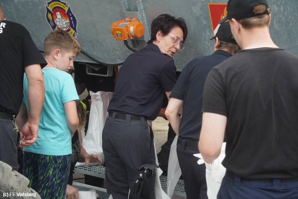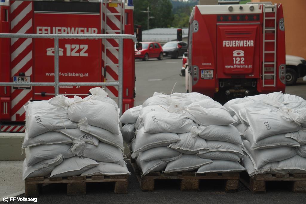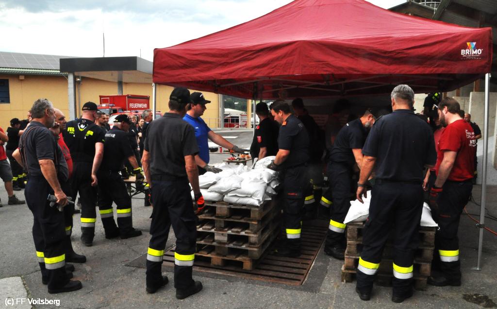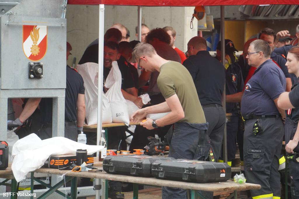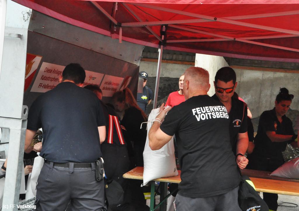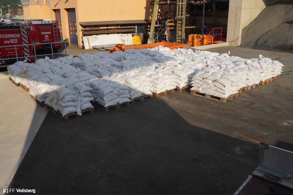 43 Personen aus den Feuerwehren Voitsberg und Krems, Mitarbeiter des städtischen Bauhofes Voitsberg sowie KameradInnen der FF Hallersdorf, welche für den BFV Voitsberg der Katastrophenstützpunkt ist, füllten am 17. Juni 2024 am Bauhof in Voitsberg tausende Sandsäcke mit der Sandsackfüllanlage für die Voitsberger Bevölkerung ab, um den Bewohnern die Möglichkeit zu geben, sich selbst vor Hochwasser zu schützen. Jeder kann bis zu 10 Sandsäcke gratis erwerben, bei sich lagern und im Unwetterfall Erstmaßnahmen von selbst setzen.