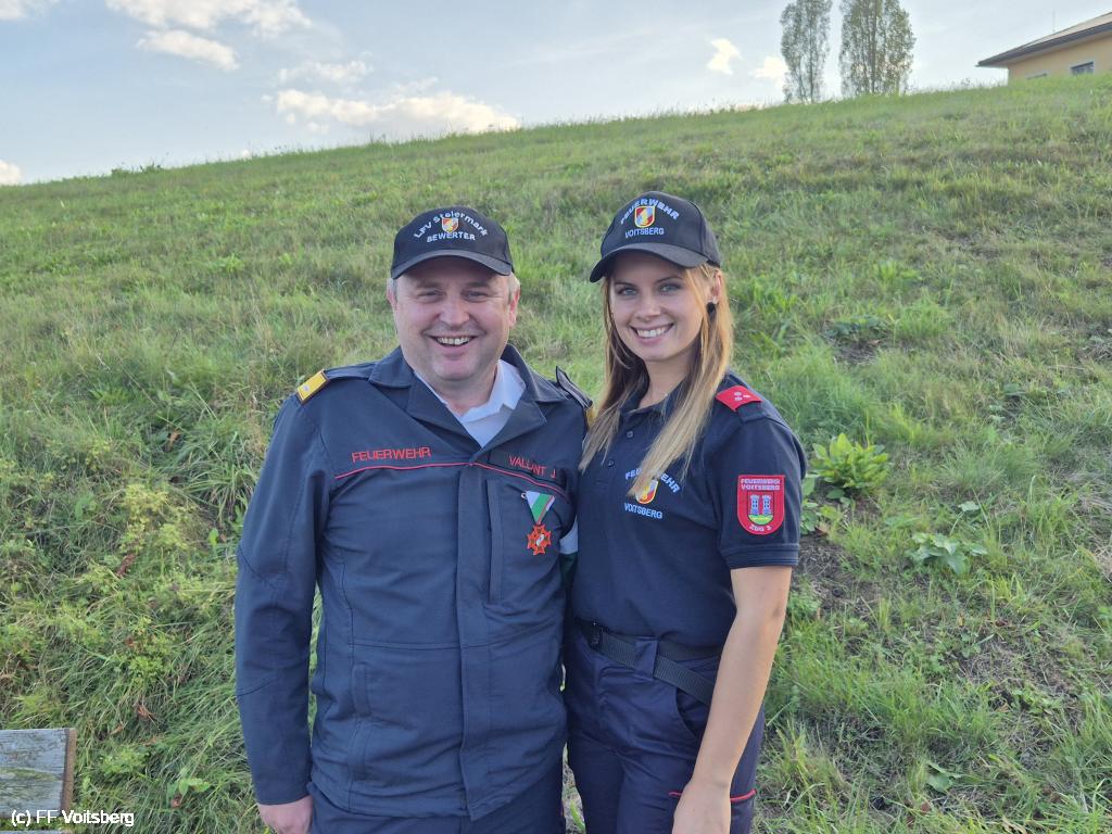Im Zuge der Schlusskundgebung wurden HLM d. V. Christian Buchegger mit der Bewerterspange in Silber und BR d. F. Prof. DI Johannes Vallant mit dem Verdienstkreuz in Bronze des BFV Deutschlandsberg ausgezeichnet.
