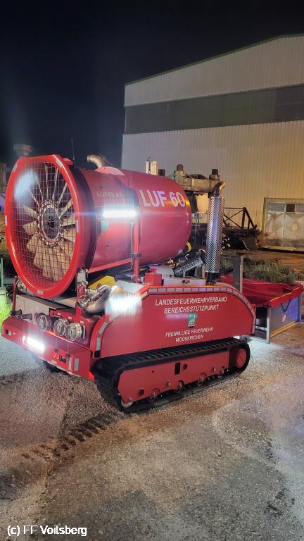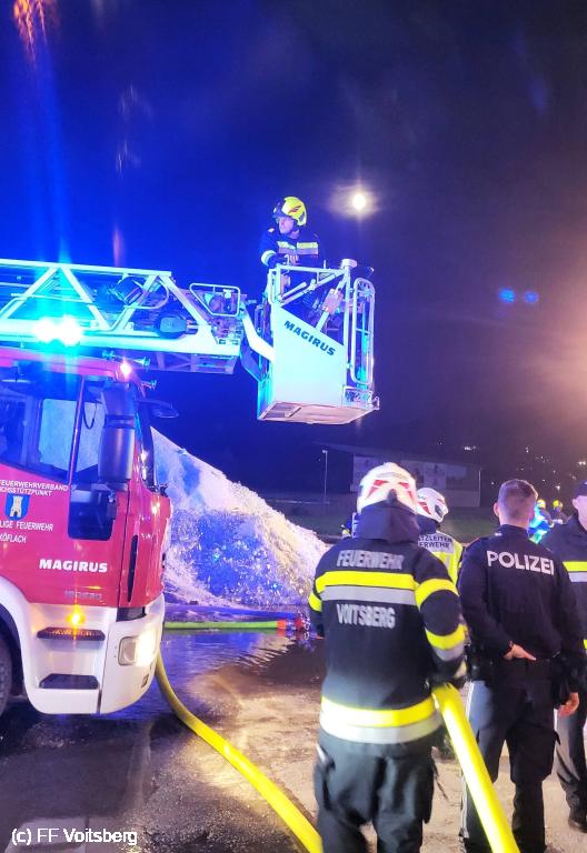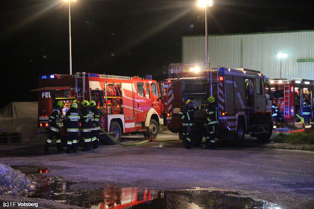Zur Unterstützung der Feuerwehrkameraden wurde das LUF Mooskirchen in Stellung gebracht, um die umliegenden Gebäude abzukühlen und die verrauchte Halle zu belüften. Die Drehleiter Köflach führte unterdessen die Kühlung des Hallendaches durch, um eine Hitzeausbreitung zu verhindern.