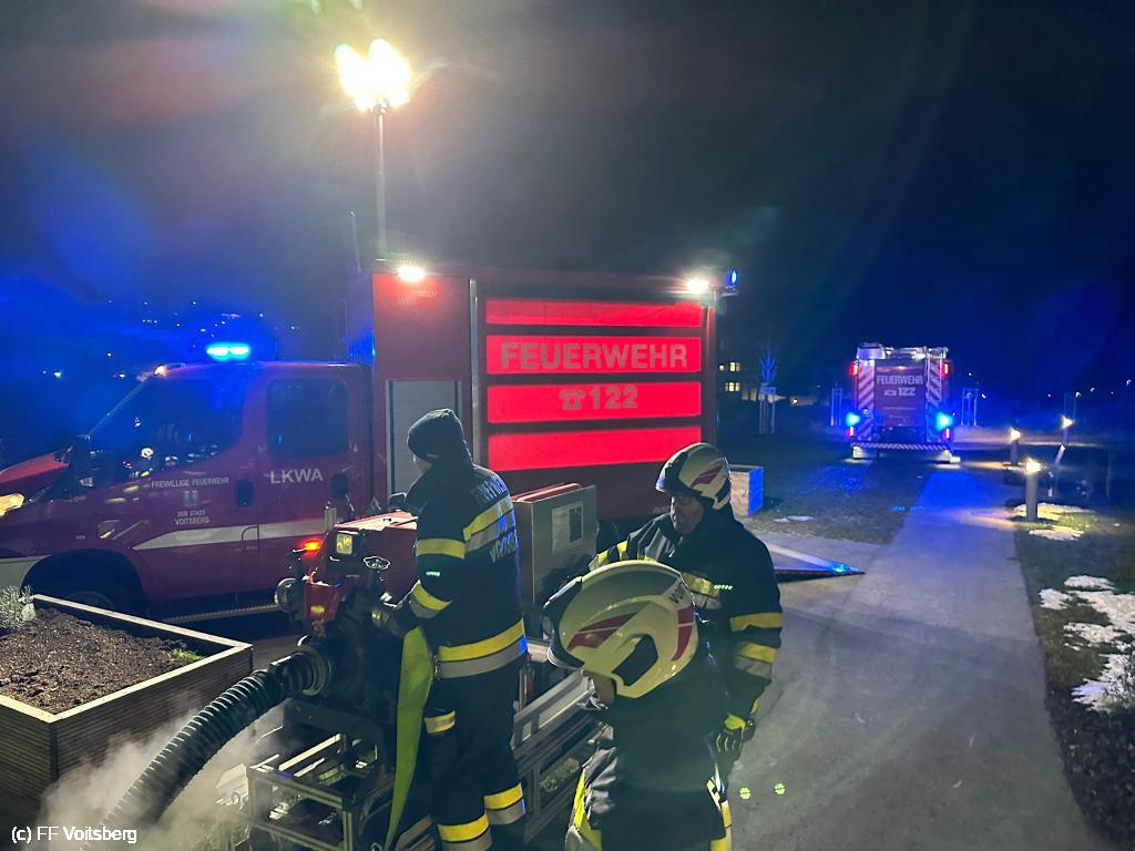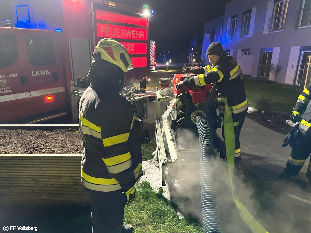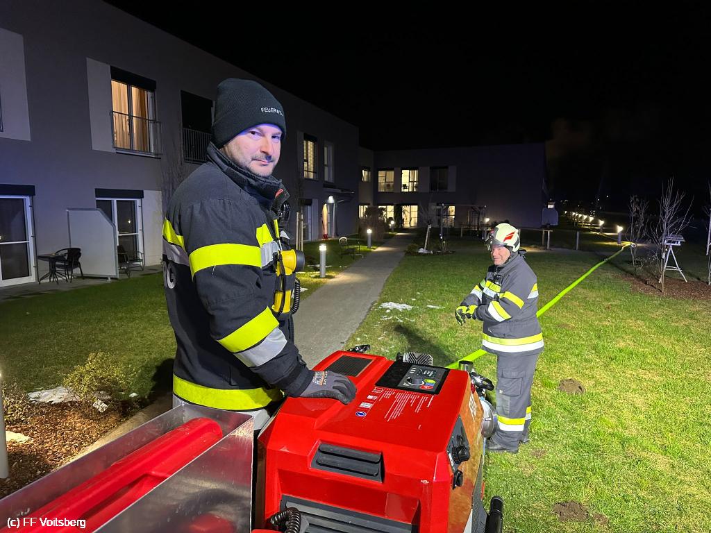 VOITSBERG, am 25.11.2024 Am Abend des 25.11.2024 wurde eine Gemeinschaftsübung mit der Freiwilligen Stadtfeuerwehr Bärnbach beim Pflegeheim Mavida Group (Compass) am Vorum abgehalten.