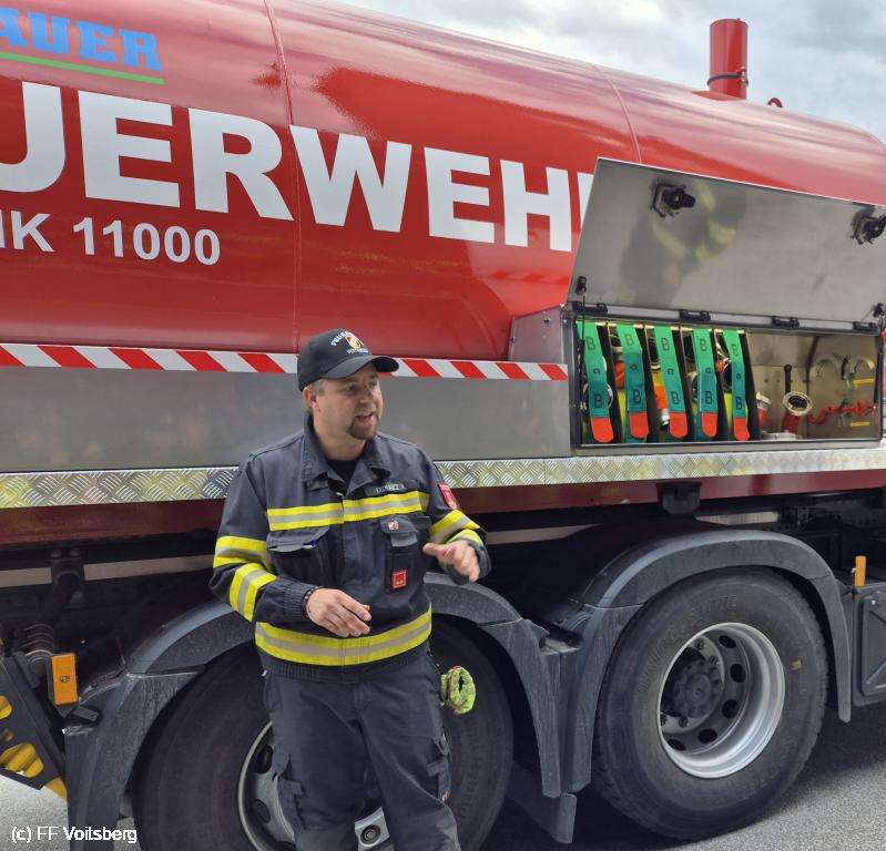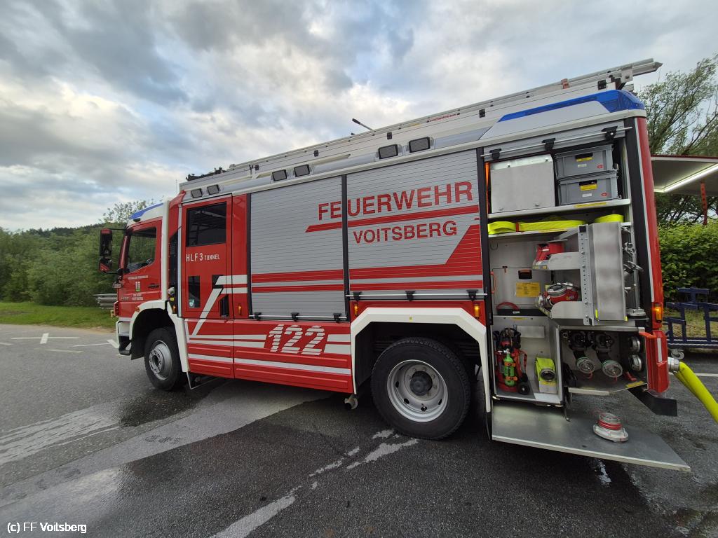 VOITSBERG, am 12.05.2025 Am Abend des 12.05.1025 wurde die erste Ausbildungsübung mit dem neuen Wechselaufbaucontainer Tank abgehalten.