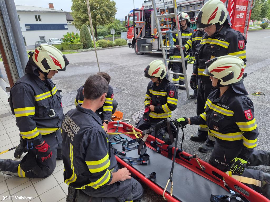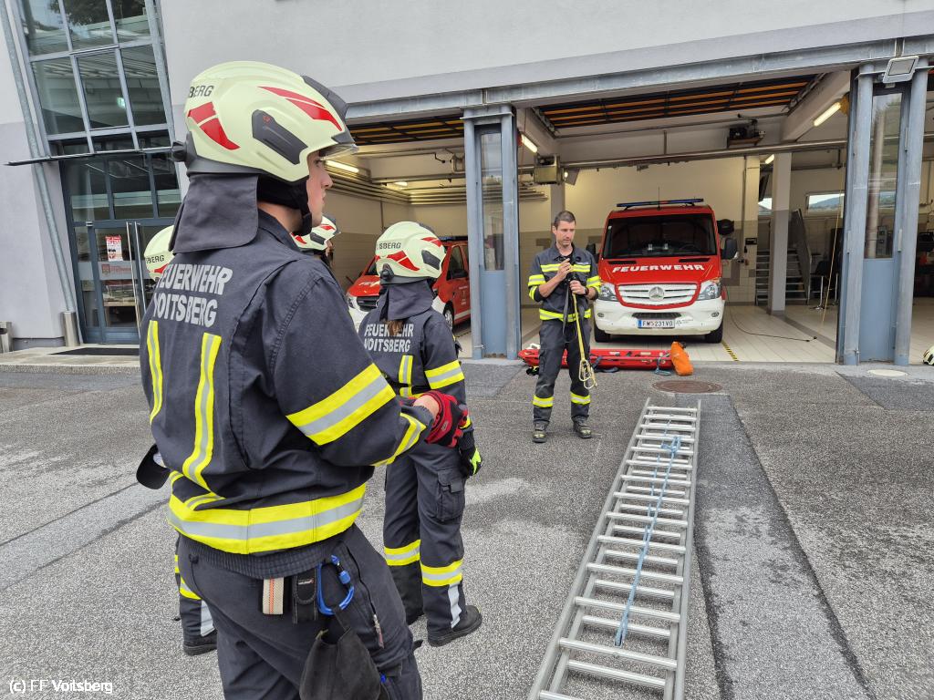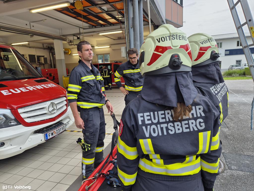 VOITSBERG, am 04.08.2025 Am Abend des 04. August 2025 wurde die Rettung von Personen über den Leiterweg beübt. Übungsleiter BM Alexander Wallner konnte dazu zahlreiche Kameradinnen und Kameraden begrüßen.