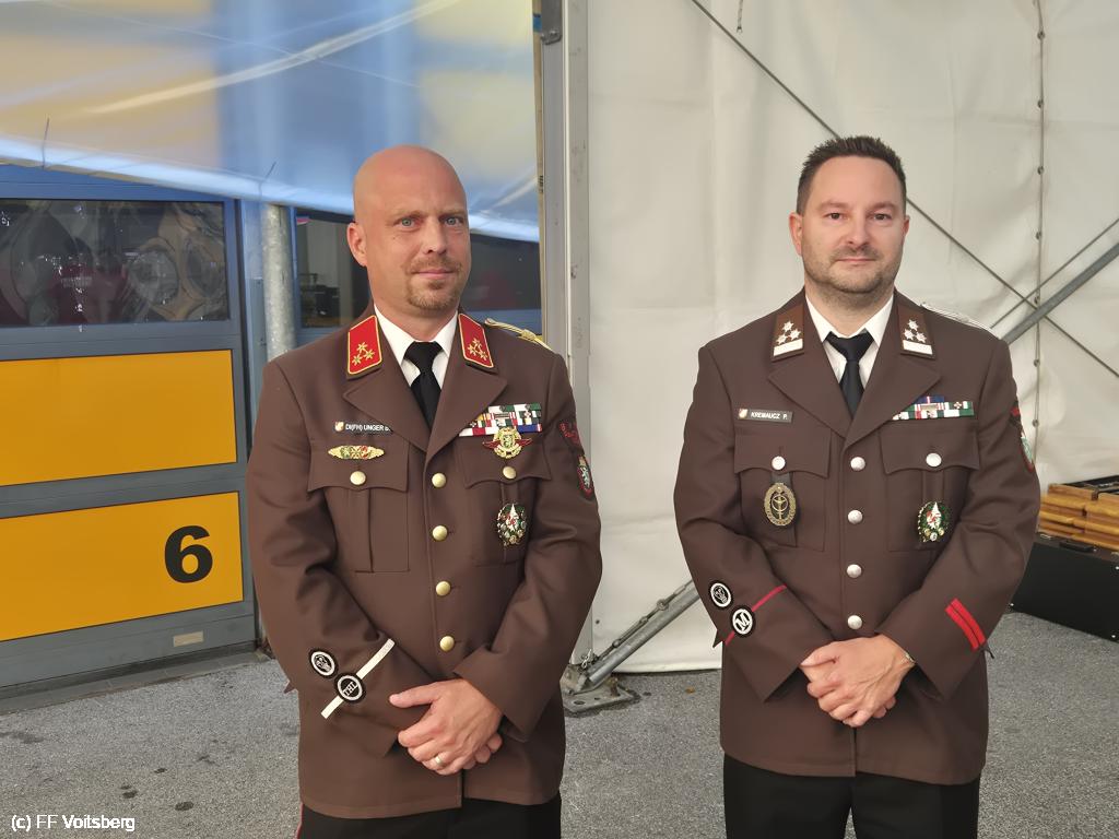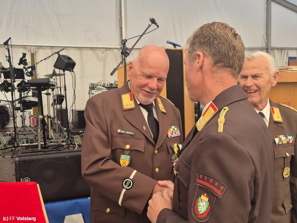 Unserem langjährigen Kommandanten BR a. D. Ing. Klaus Gehr wurde die Medaille für 50-jährige und EABI Rudolf Gargitter die Medaille für 60-jährige verdienstvolle Tätigkeit auf dem Gebiete des Feuerwehr und Rettungswesens verliehen.