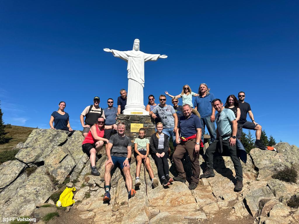 Die Feuerwehrkameradinnen und -kameraden mit ihren Partnern und Kindern verbrachten nach einer kurzen Wanderung bei strahlendem Sonnenschein gemütliche Stunden am Oskar-Schauer-Haus.