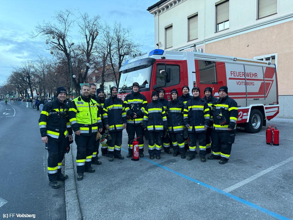 13 Kameradinnen und Kameraden sorgten beim Voitsberger Krampuslauf für den behördlich vorgeschriebenen Brandschutz.