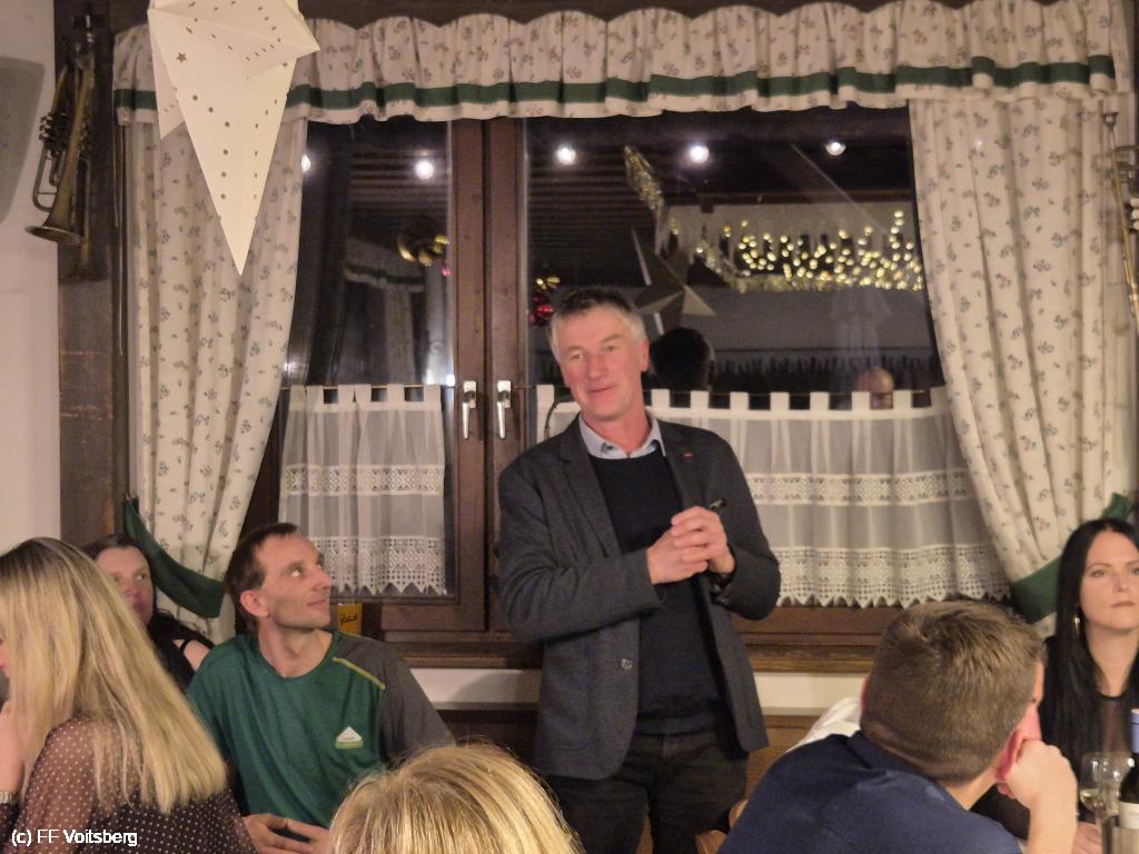Bereichsfeuerwehrkommandant LBDS Christian Leitgeb dankte in seiner Ansprache für die erbrachten Leistungen im bald endenden Kalenderjahr. Als Stützpunktfeuerwehr ist die FF Voitsberg eine wichtige Stütze für den gesamten Bezirk und darüber hinaus. Einen besonderen Dank richtete Leitgeb an seinen langjährigen Stellvertreter EBR Ing. Klaus Gehr, welcher heuer in die "Feuerwehrpension" verabschiedet wurde.