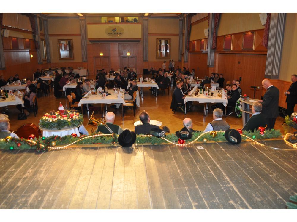 VOITSBERG, am 15.12.2012 In den Stadtsälen Voitsberg fand die schon zur Tradition gewordene Weihnachtsfeier der Stadtfeuerwehr Voitsberg statt. Zugskommandant HBM Karlheinz BUCHEGGER moderierte und konnte namens des Kommandos nachstehende Ehrengäste begrüßen: Dechant und Stadtpfarrer, BFKUR Dr. Erich LINHARDT, Bürgermeister EHBI Ernst MEIXNER, die Stadträte Franz SACHERNEGG, Werner BLUMAUER und Horst-Werner KOVACIC, Altbürgermeister EHBI Helmut GLASER, Bereichsfeuerwehrkommandant OBR Engelbert HUBER, ELBD Karl STRABLEGG, ELBDS Gustav SCHERZ, EABI Rudolf GARGITTER, EOBM Hermann POCIVALNIK und EHLM Konrad KOLLEGGER. Musikalisch umrahmt wurde diese festliche Veranstaltung von den Södingtaler Weisenbläsern, dem Stallhofner Zweigesang mit Sigmund Schmolli auf der Harmonika und von der Spielgruppe Sabine, Elisabeth und Sonja. Es folgten dann Begrüßungsworte und Gedanken zum Advent von HBI Ing. Klaus GEHR, Dechant Dr. Erich LINHARDT und OBR Engelbert HUBER.