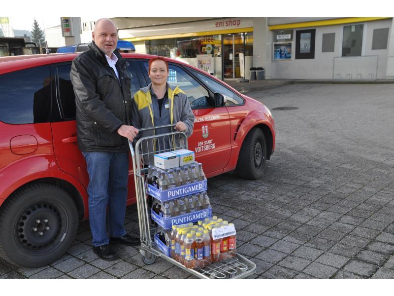 VOITSBERG, am 24.12.2014 Die Geschäftsleitung der ENI-Tankstelle in Voitsberg übergab der FF Voitsberg eine Warenspende und Vizebürgermeister Walter Gaich stellte sich mit Voitsberger Einkaufsgutscheinen anläßlich der Weihnachtsfeiertage und des bevorstehenden Jahreswechsels ein. Die Kameradinnen und Kameraden bedanken sich !