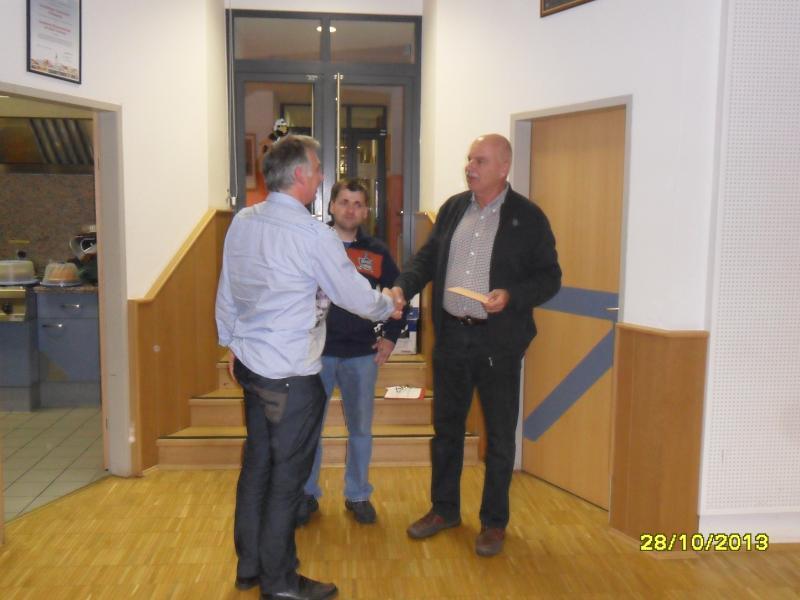 Nach der Übung gratulierten die Wehrkommandanten HBI Ing. Klaus Gehr und OBI Michael Münzer dem Kameraden LM Ing. Peter Rußmann zur Vollendung seines 50. Lebensjahres und übergaben ihm namens seiner Feuerwehrkameraden/Innen ein Ehrengeschenk. Der Jubilar bedankte sich und lud alle zu einem gemeinsamen Abendessen ein.