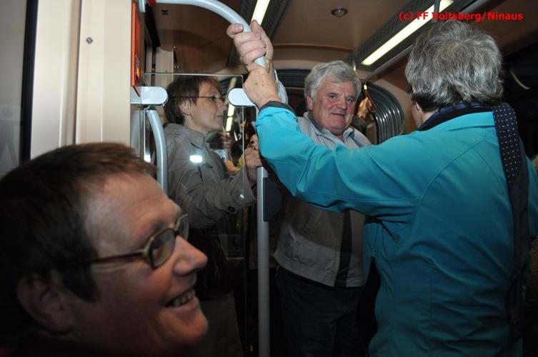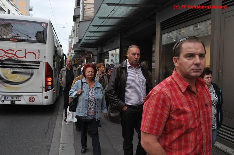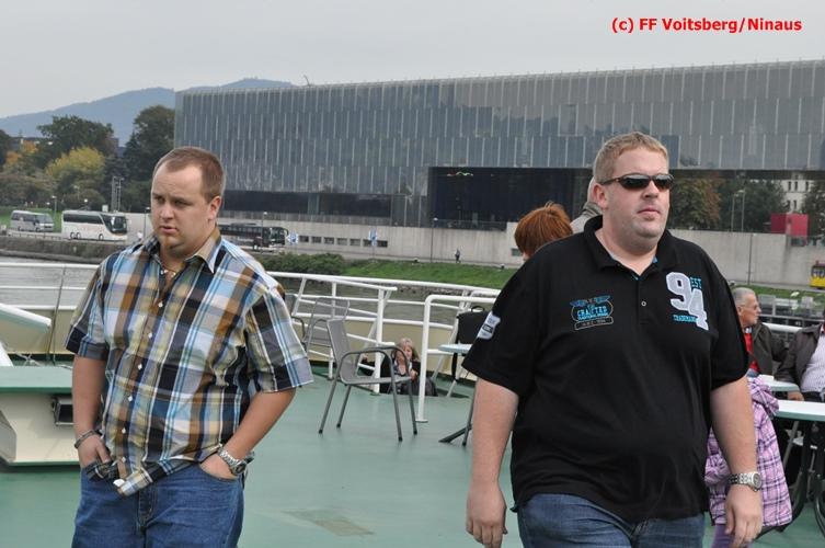 VOITSBERG, am 29.09.2012 Die FF Voitsberg führte einen Zweitagesausflug durch. Das Ziel war diesmal die Landeshauptstadt Linz in Oberösterreich. Um 06:45 Uhr fuhren wir mit einem Reisebus der Firma Gosch in Richtung Linz ab. Das Frühstück nahmen die insgesamt 46 Teilnehmer im Gasthaus Steyrbrücke in St. Pankraz ein. Gestärkt ging es weiter direkt nach Linz, wo es einen Stadt- und Einkaufsbummel in der Innenstadt gab. Im Restaurant „Klosterhof“ wurde das Mittagessen eingenommen. Anschließend fand eine Schifffahrt von Linz nach Aschach statt, wo auch viele Teilnehmer erstmals den Vorgang an einer Schleuse miterleben durften. Danach fuhren wir mit unserem Bus zu unserem Quartier ins Hotel Steigenberger nach Linz. Am Abend stand eine Fahrt mit der Eisenbahn aus den Pöstlingberg zum Abendessen auf dem Programm. Der Blick in die beleuchtete Stadt Linz vom Linzer Hausberg wird wohl so manchen lange in Erinnerung bleiben. Nach der Rückkehr ins Hotel fand bei einem gemütlichen Beisammensein der Tag seinen Ausklang.
