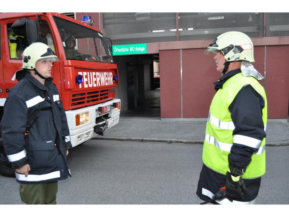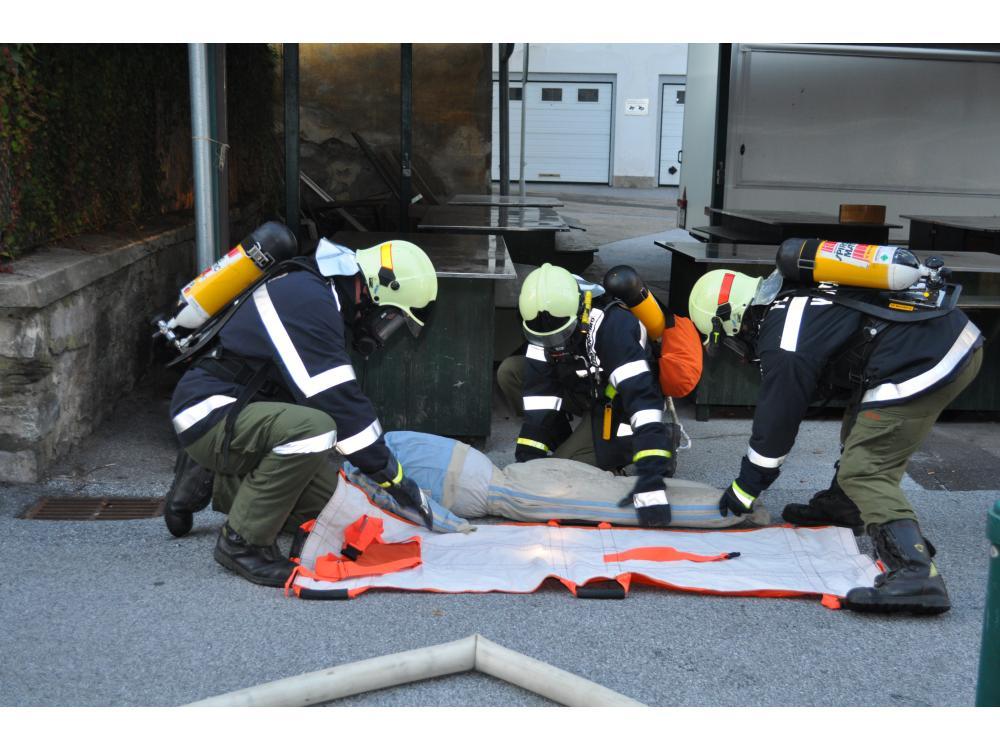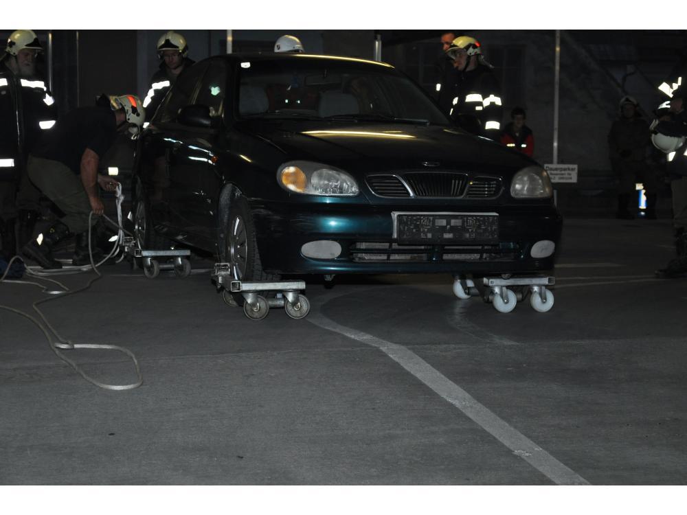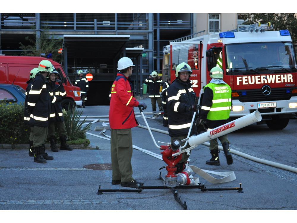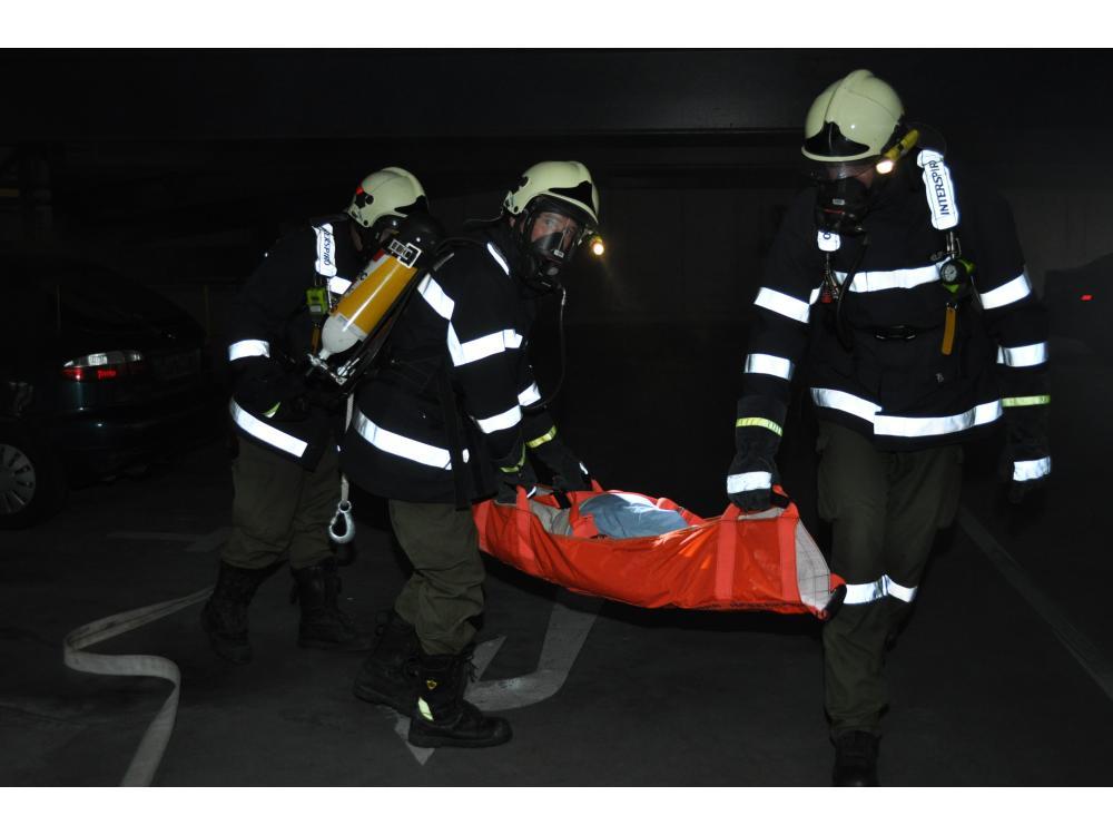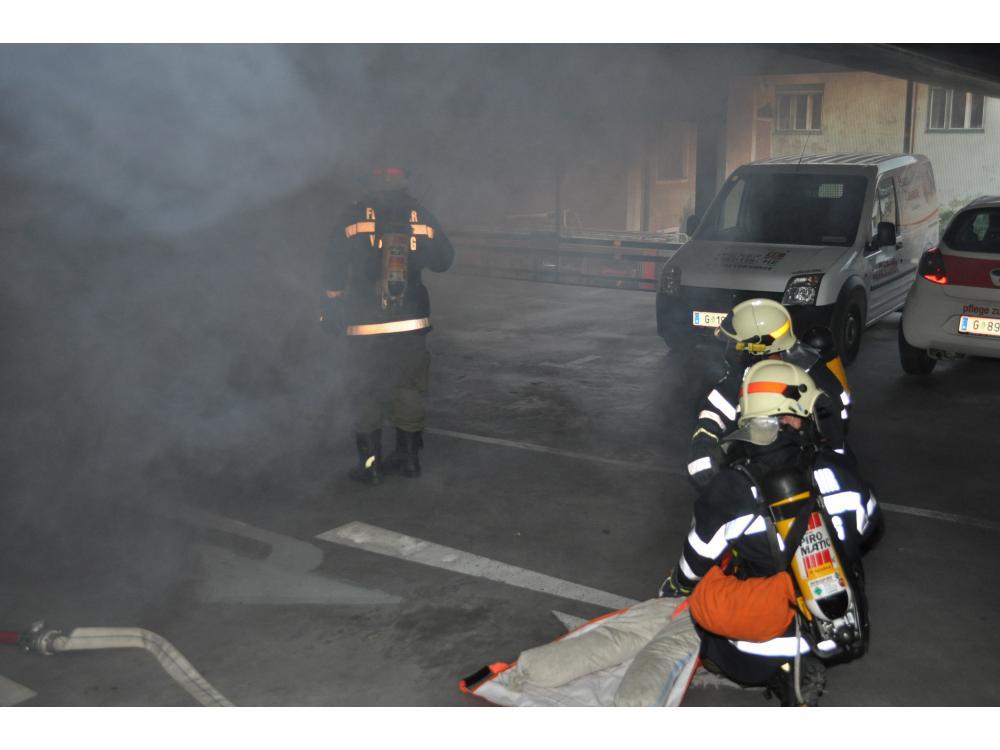 VOITSBERG, am 17.09.2012 Übungsannahme war ein Brand eines PKW mit einer im Fahrzeug befindlichen Person. Bergung und Erstversorgung der Person unter schwerem Atemschutz und Transport ins Freie. Löschen des Fahrzeuges ebenfalls unter Atemschutz und u.a. die Verwendung der Steigleitung im Parkhaus. Bergung des PKW mittels Abschlepproller unter Sicherung mit MRAS. Abtransport des KFZ mittels Abschleppachse.
