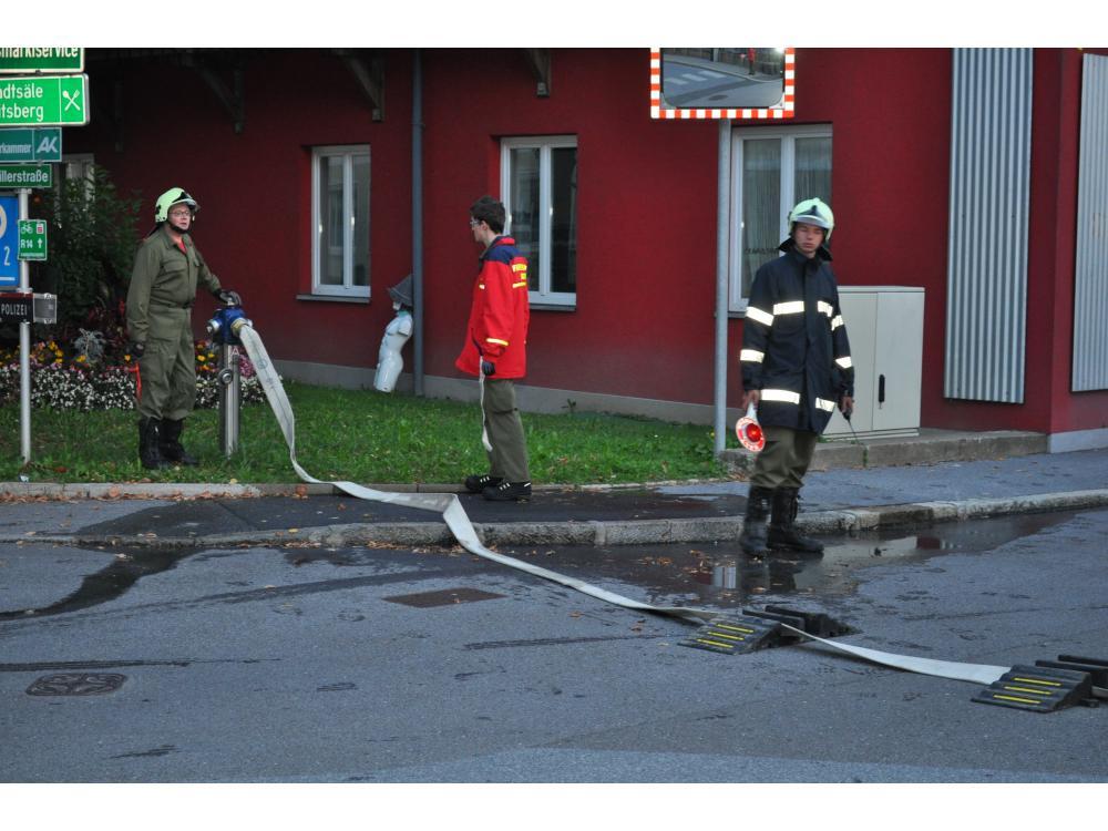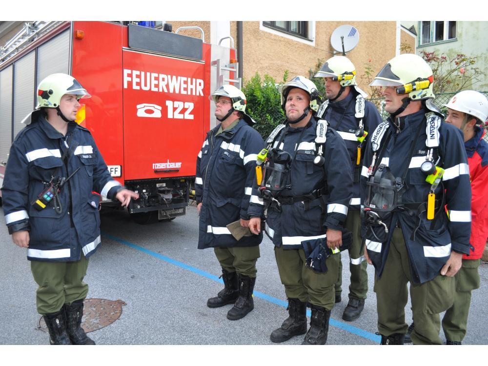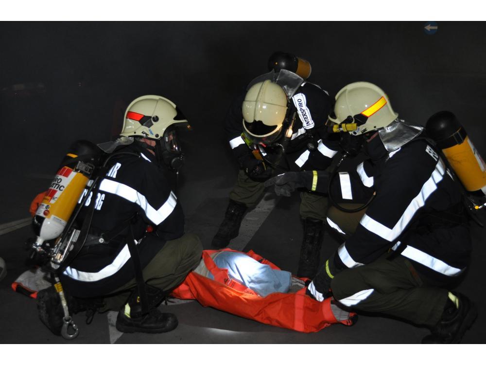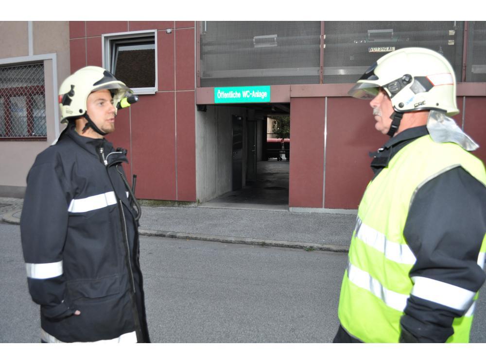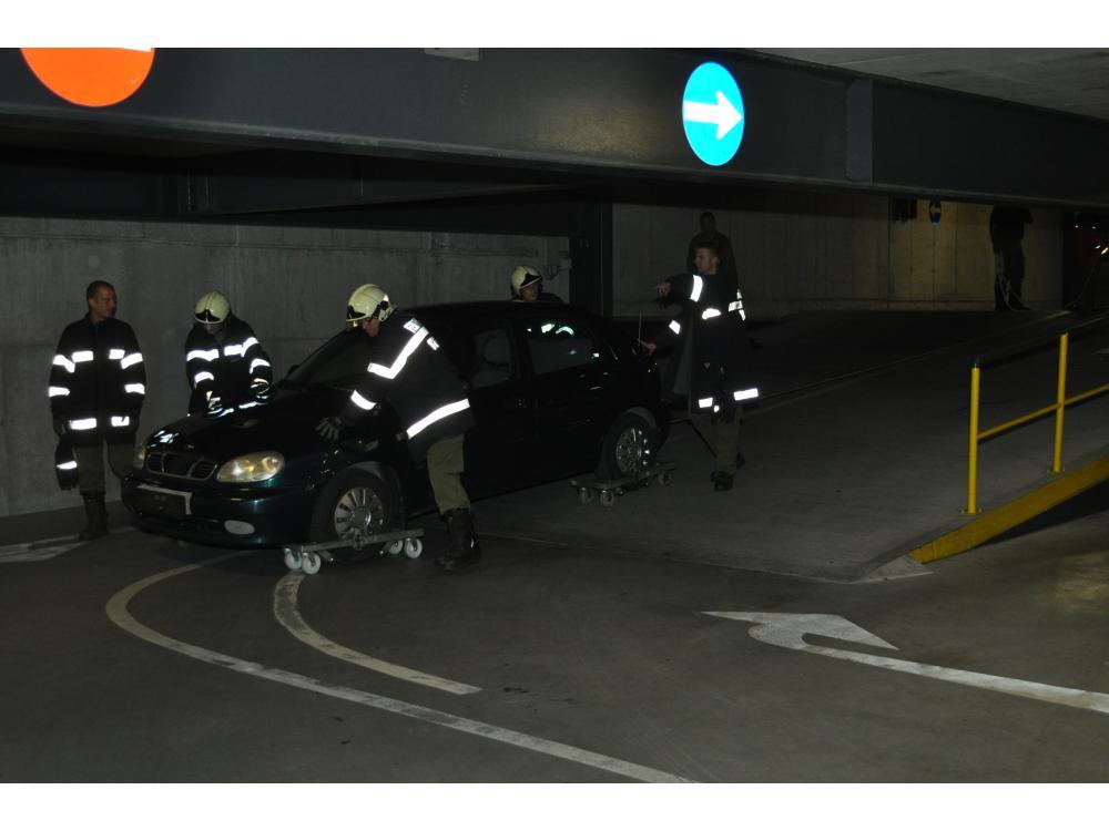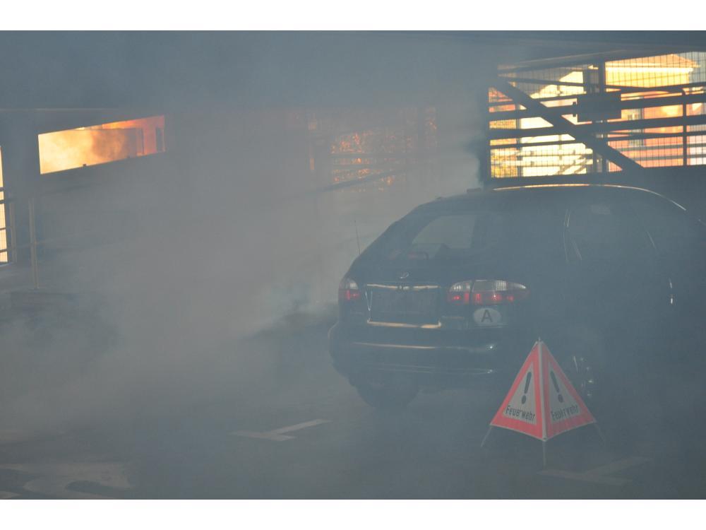 VOITSBERG, am 17.09.2012 Übungsannahme war ein Brand eines PKW mit einer im Fahrzeug befindlichen Person. Bergung und Erstversorgung der Person unter schwerem Atemschutz und Transport ins Freie. Löschen des Fahrzeuges ebenfalls unter Atemschutz und u.a. die Verwendung der Steigleitung im Parkhaus. Bergung des PKW mittels Abschlepproller unter Sicherung mit MRAS. Abtransport des KFZ mittels Abschleppachse.