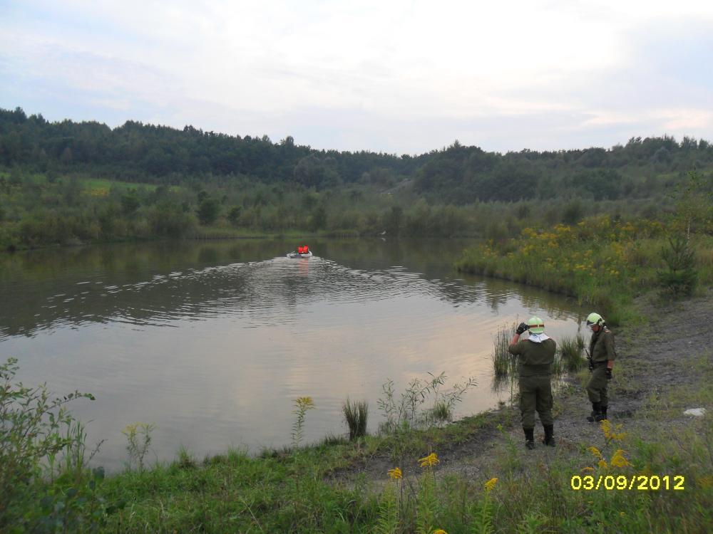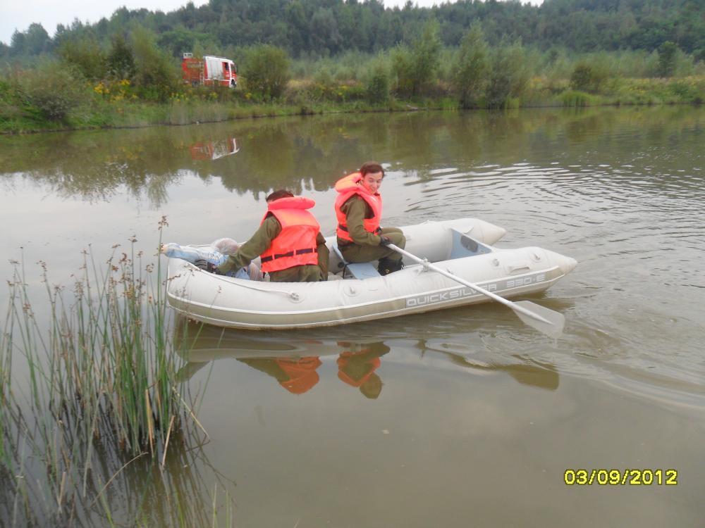 Abschließend fand mit dem Schlauchboot unter Ausnützung der örtlichen Gegebenheiten die Bergung einer Person aus dem Schilfgürtel des Teiches statt.